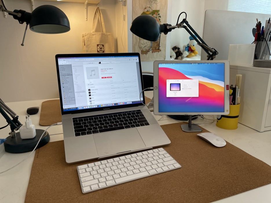 아이패드 높이가!!! 좀 더 업업업!!!! 맥북 모니터 높이까지 올라가라고!!!!