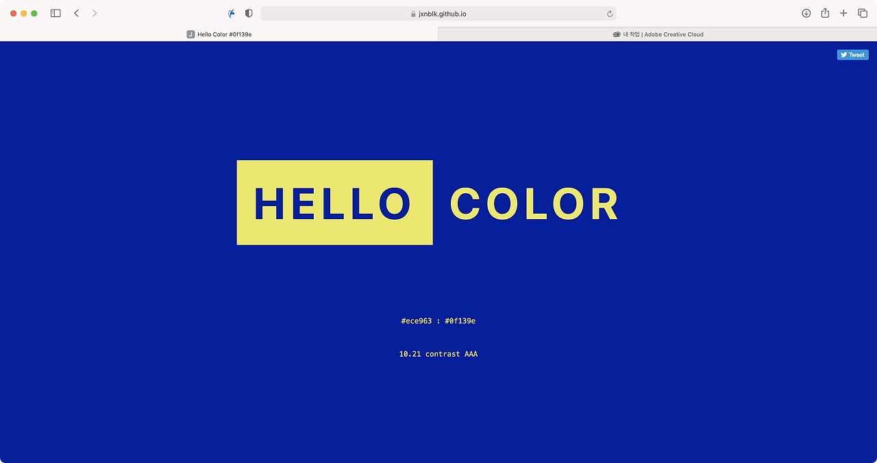 명도 대비가 뛰어난 2가지 컬러를 랜덤으로 추천합니다. 컬러코드를 복사하여 바로 활용할 수 있습니다. 클릭할 때마다 컬러를 추천해주고, 배경과 텍스트의 명도 대비를 표시해 줍니다.