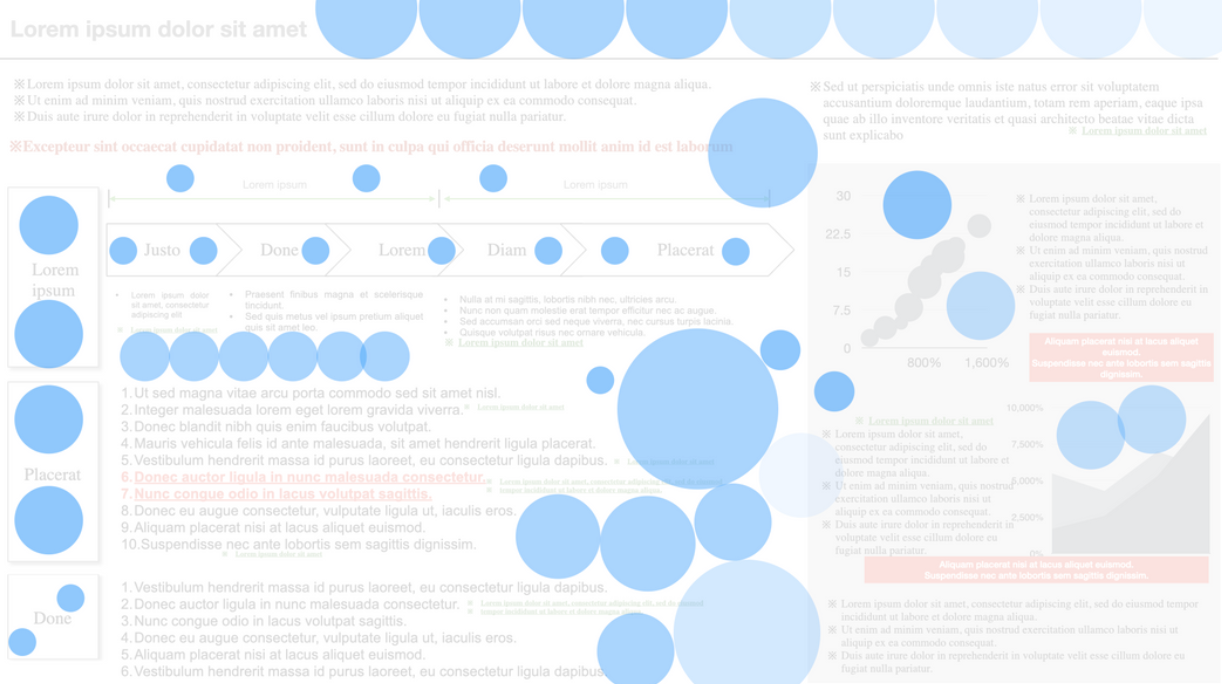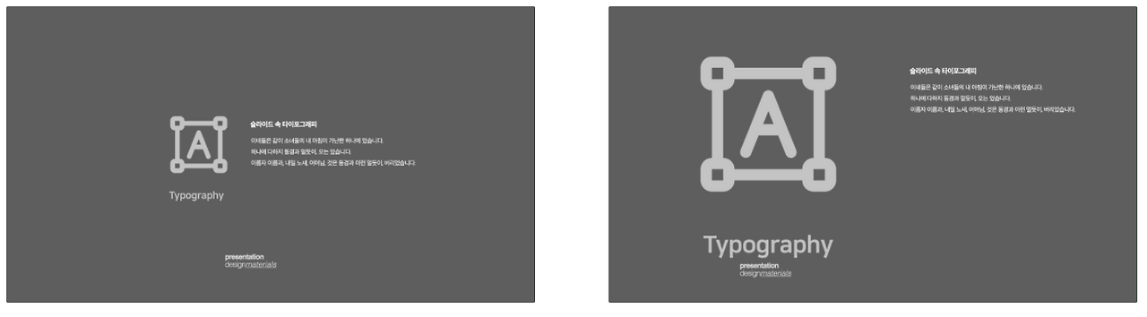 슬라이드 위의 디자인 요소들의 사이즈 조정과 여백을 잘 조정하면 요소 간의 깊이감을 만들어내 디자인 요소들의 강약을 조절할 수 있습니다