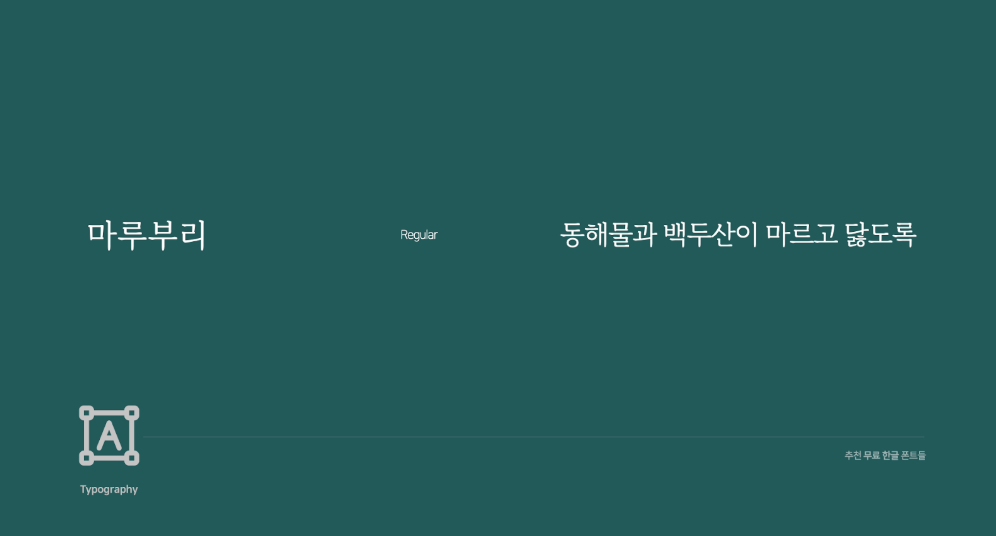 마루 부리 글꼴은 새로운 디지털 환경에 맞추어 젊고 당당한 밝은 글꼴 인상은 주며, 굵기 대비가 적고 단순한 구조로 글꼴 공간을 효율적으로 구성해 균형미를 갖춘 것이 특징입니다. 현재 Regular 버전으로 시험판 사용이 가능하고, 향후 다양한 글꼴이 배포될 예정입니다.