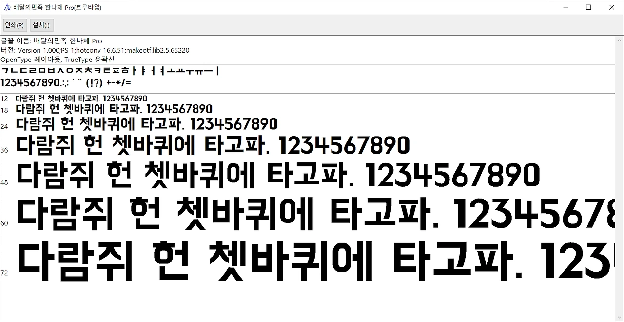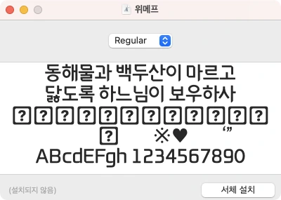 1. 경로 지정 후 다운로드를 합니다. 다운로드가 완료되면 다운로드 경로에서 파일을 더블클릭하여 파일을 실행합니다. 창이 열리면 상단의 [설치]를 눌러 글꼴을 설치합니다.