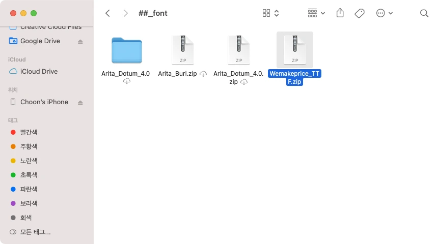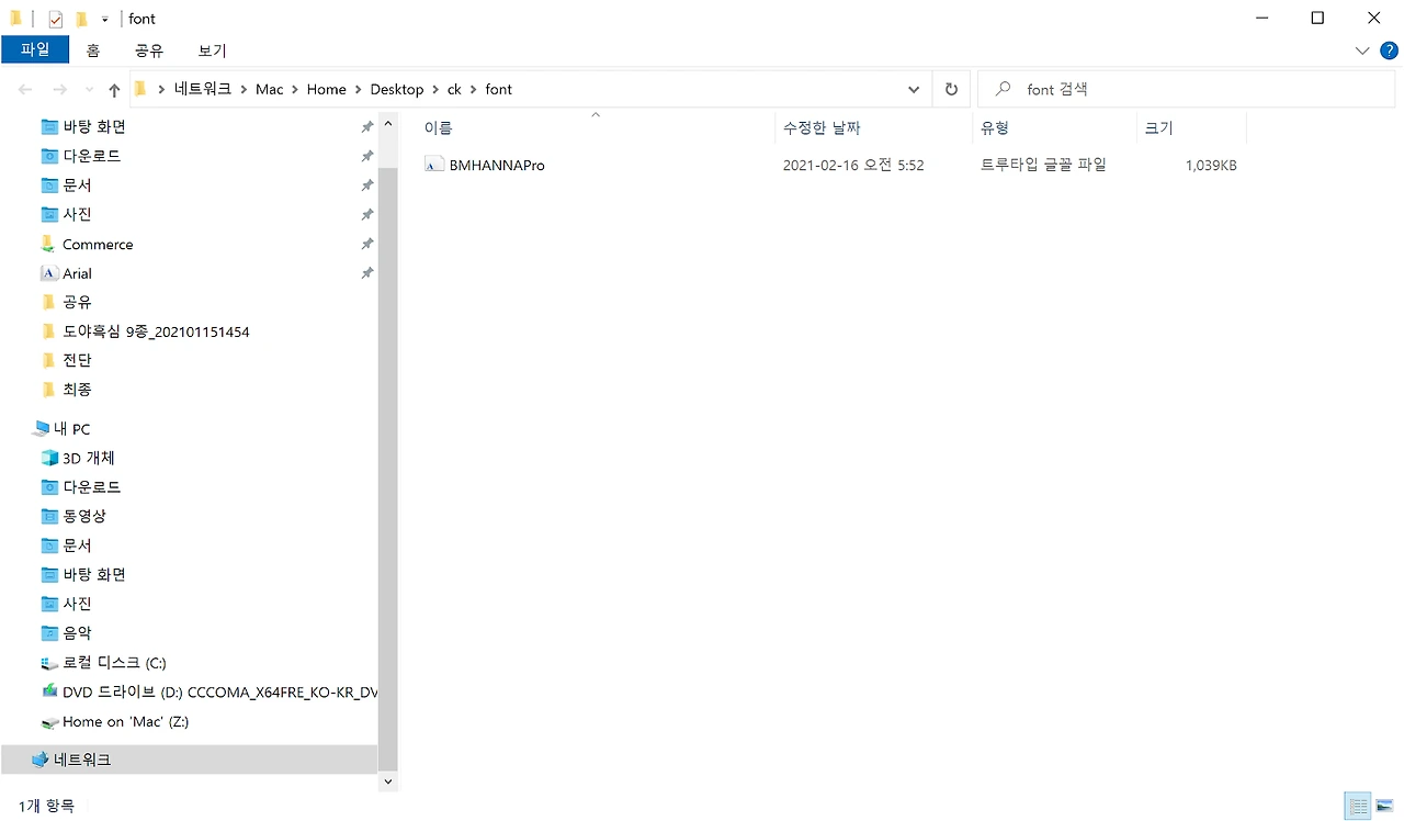 1. 다운로드 사이트에서 마음에 드는 서체를 다운로드합니다. 주로 프레젠테이션 용도이니 TTF형식을 다운로드하여도 괜찮습니다.