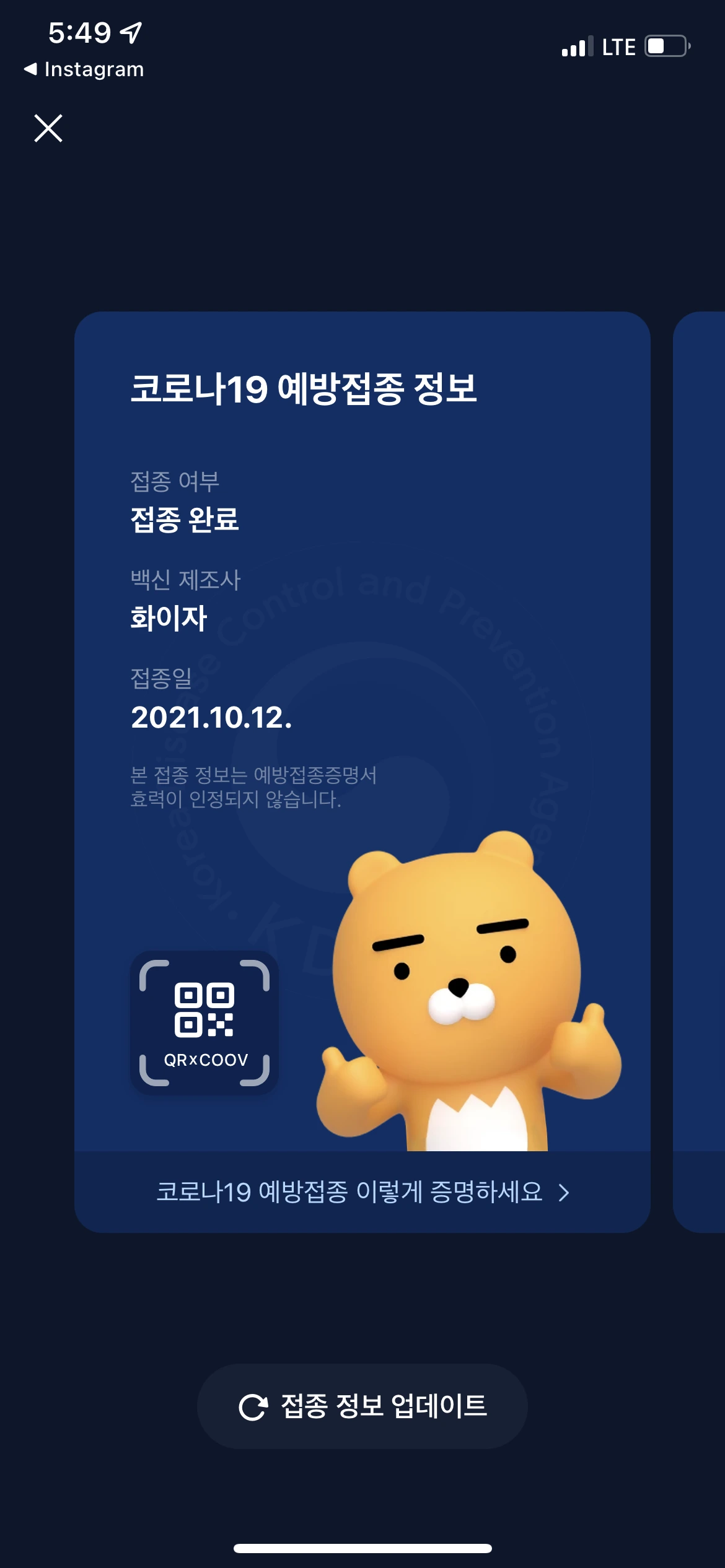 (더보기 - QR체크인 - 예방접종 보기(의료기관에서 백신 접종 완료한 사람들만 자동 연결)