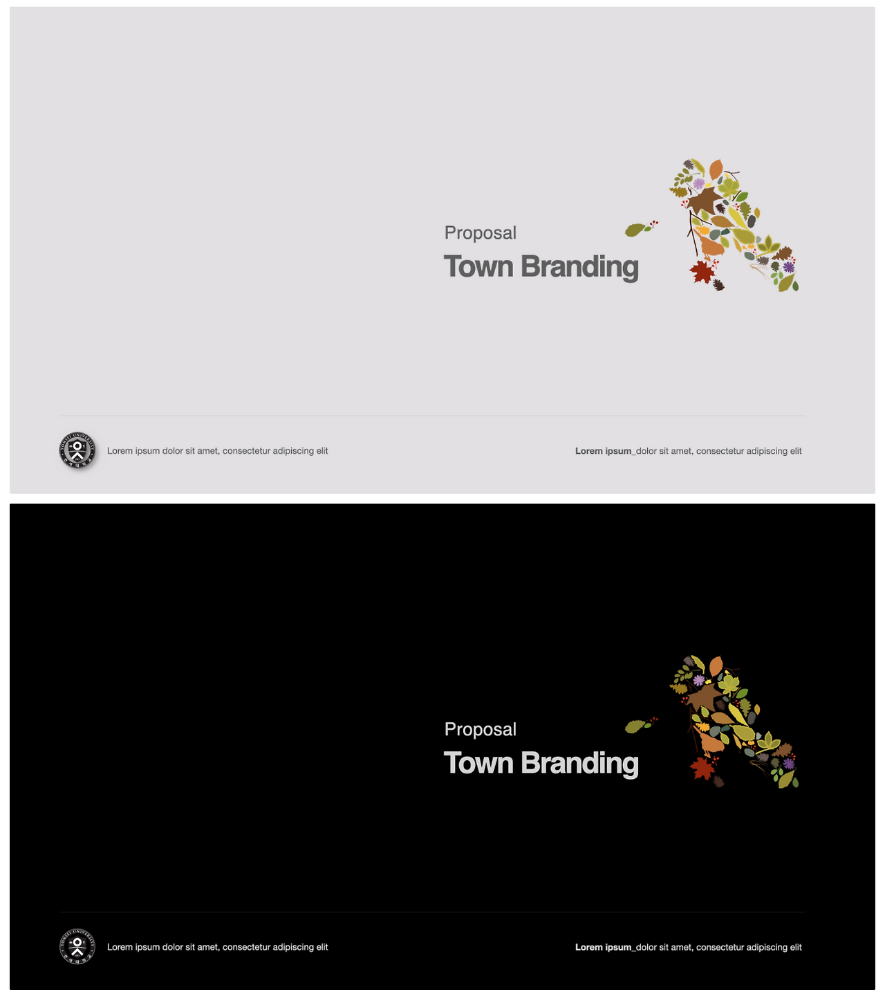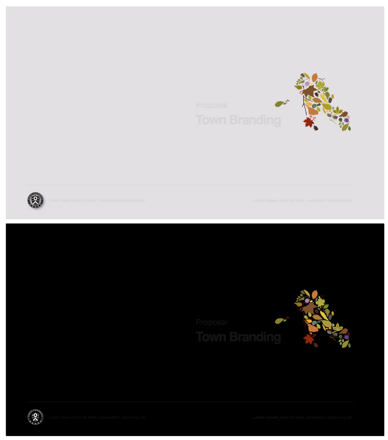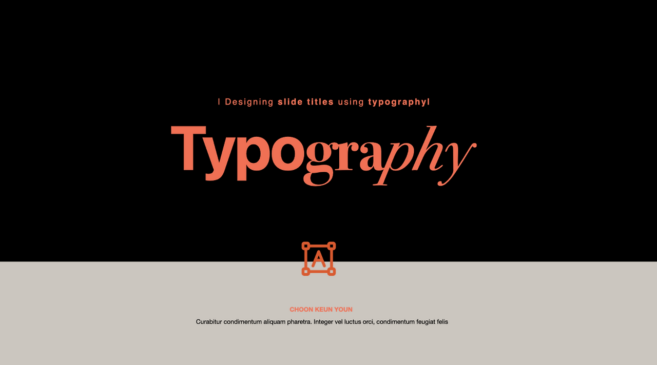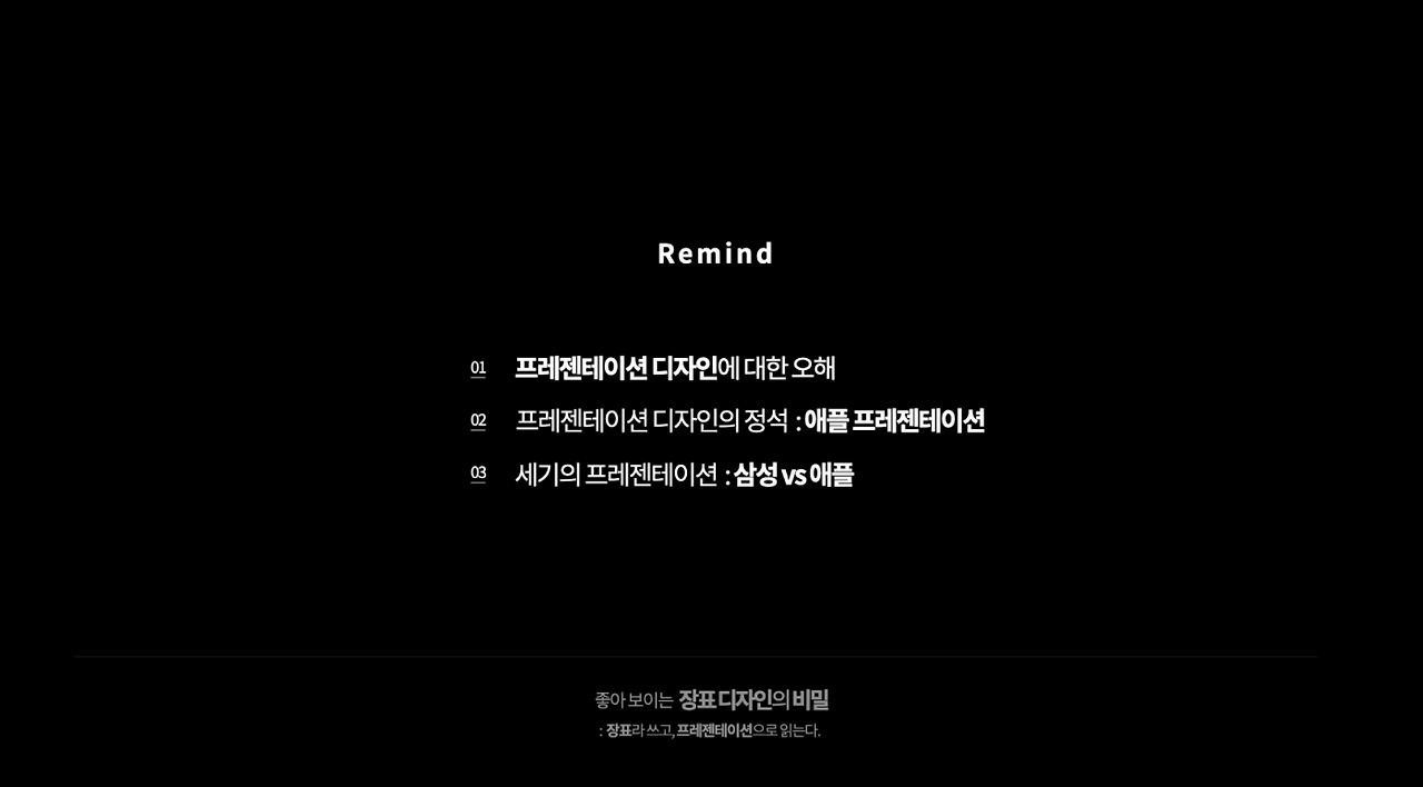 슬라이드 배경에 사용된 검은색 도형으로 인해 무게의 중심이 다르게 보입니다. 위의 슬라이드 경우 무게의 중심이 아래쪽으로 위치하여 안정감이 느껴지고, 아래의 슬라이드 경우 무게의 중심이 상단으로 배치되어 안정감은 없지만 제목 상단 영역의 주목도를 높여주고 있습니다.