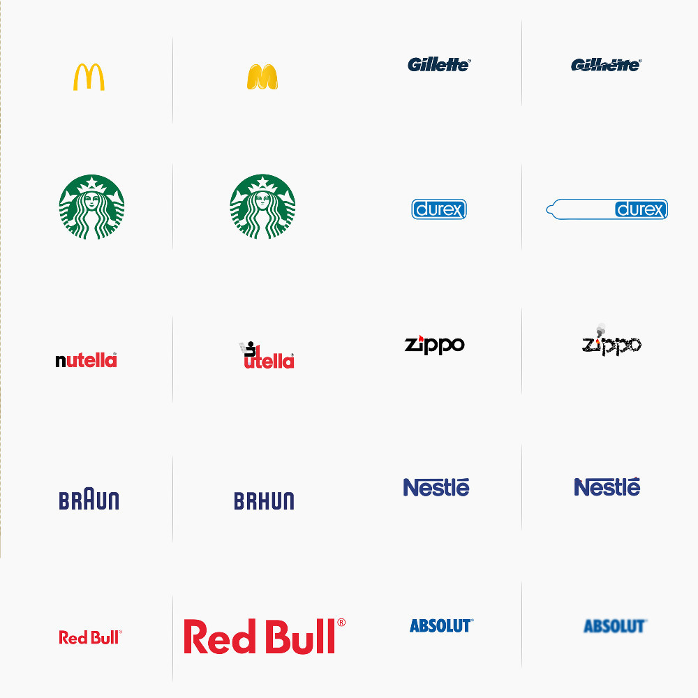 What famous logos would look like if they were affected by their own products?Mc Donald's - Gillette - Braun - Durex - Starbucks - Nestlé - Nutella - Absolut - Redbull - Zippo