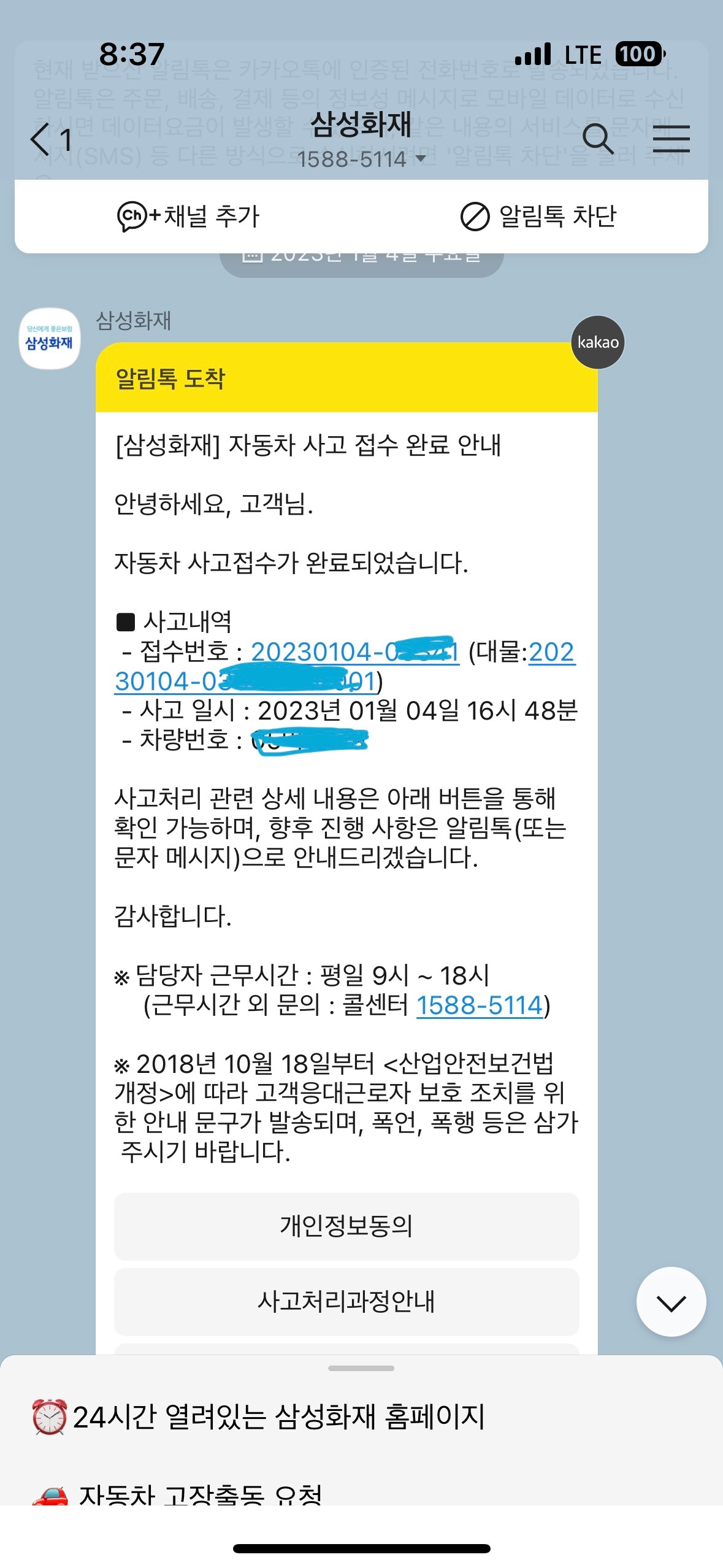 나중에 알게 된 사실인데, 정차한 차를 뒤에서 박으면 뒤차에 과실이 100% 이고, 내 차가 0%고 분쟁 이유가 없으면 굳이 보험처리사를 부르지 않아도 된다고 한다. 나의 경우는 가해차주분께서 100% 자기가 잘못했다고 이야기를 한 상황이라 더더욱 경찰이고, 보험처리사가 필요 없었다. 그리고 가해차주분은 사고 현장에서만 목소리를 들었을 뿐, 그 이후 처리는 상대방 보험처리사와 이야기하면 되므로, 가해차주의 명함이나 그런 건 더더욱 필요가 없다. 사건 현장(?)에서 대물접수번호, 상대방 보험사연락(상대방 보험사에서 사고접수 되었다고 카톡이 옴)만 확인되면, 굳이 현장에 남아있을 필요가 없었다.