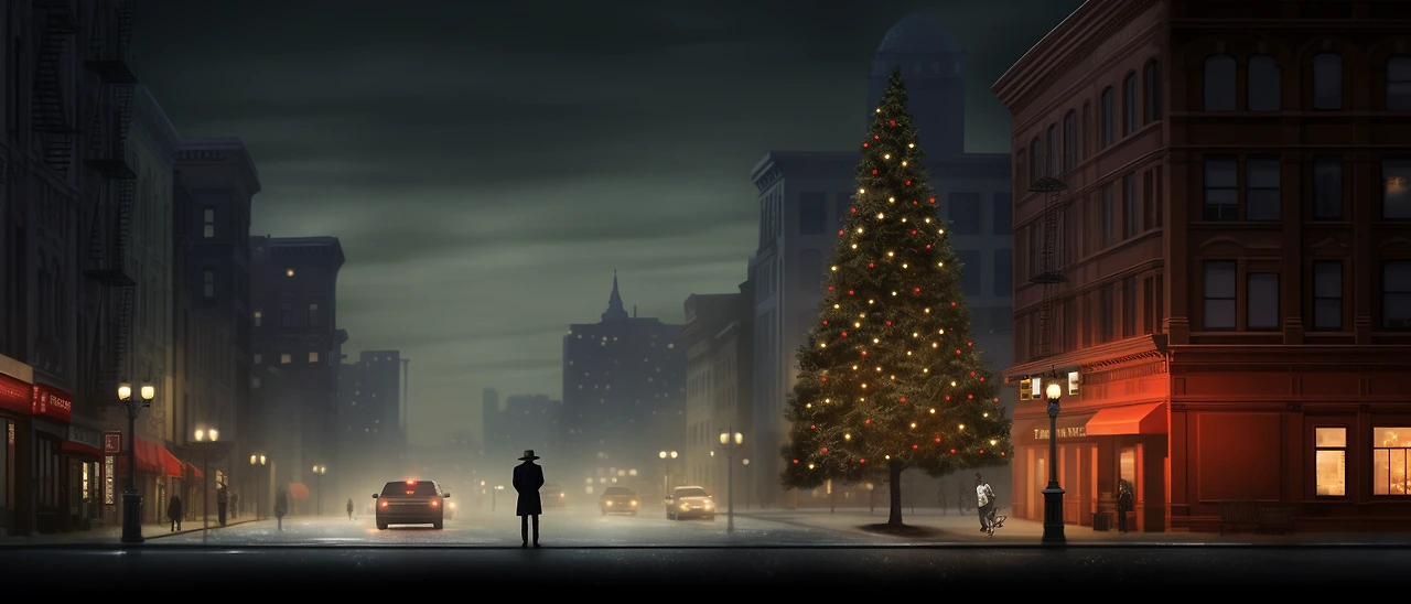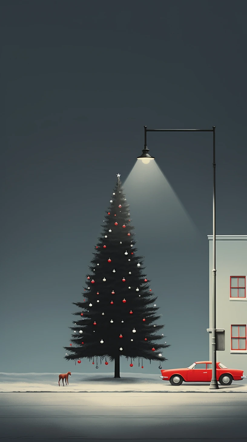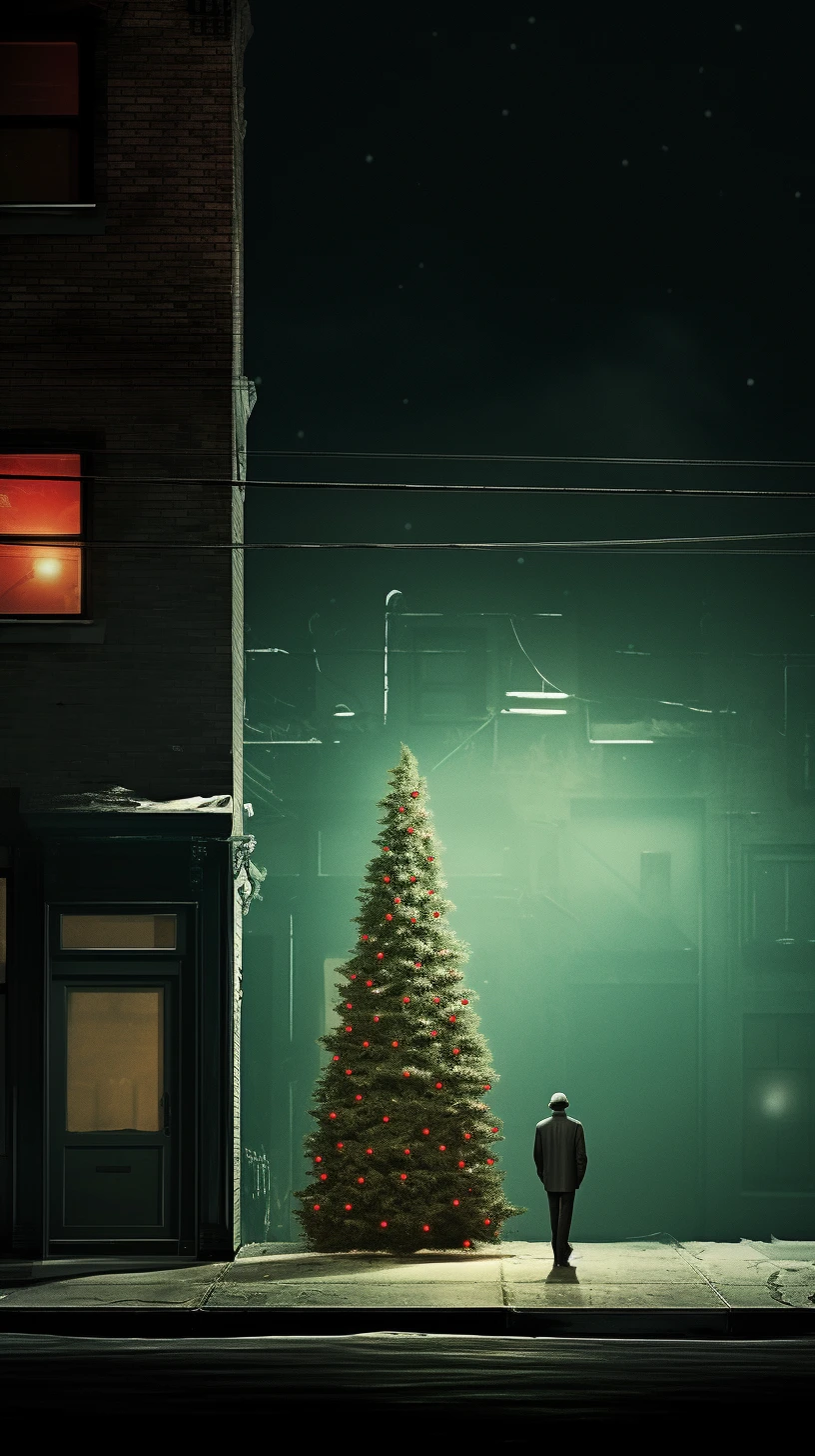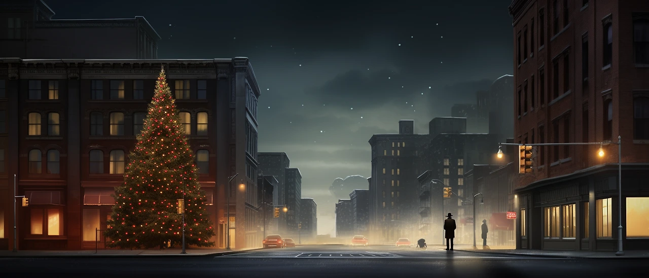 두 번째 콘셉트는 또 내가 좋아하는 아티스트인 애드워드 호퍼의 스타일로 도시의 크리스마스 분위기를 생성해 보았다. 광고 스타일로 느낌을 뽑아서, 여백이 상대적으로 많이 설정되어 보인다. (프롬프트에 promotion키워드를 넣었다)