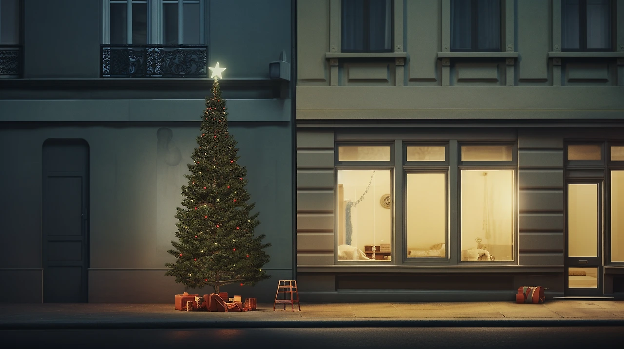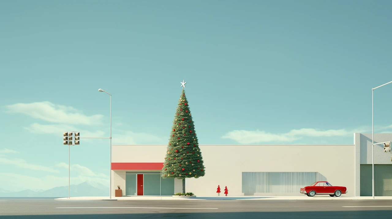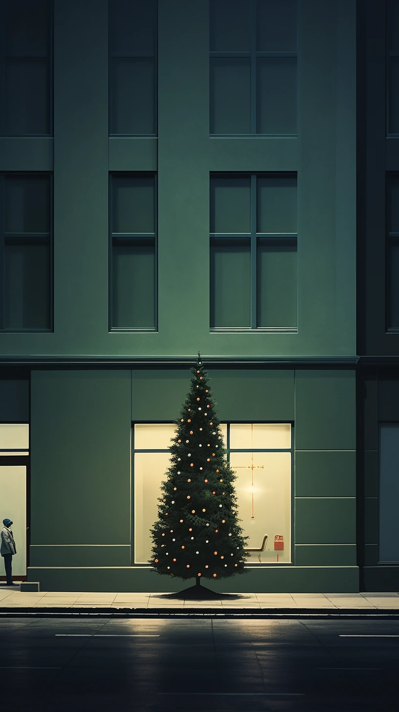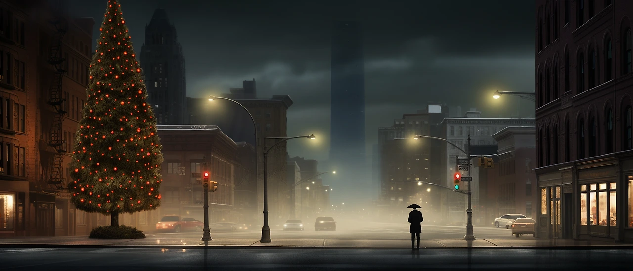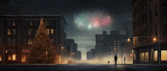 두 번째 콘셉트는 또 내가 좋아하는 아티스트인 애드워드 호퍼의 스타일로 도시의 크리스마스 분위기를 생성해 보았다. 광고 스타일로 느낌을 뽑아서, 여백이 상대적으로 많이 설정되어 보인다. (프롬프트에 promotion키워드를 넣었다)