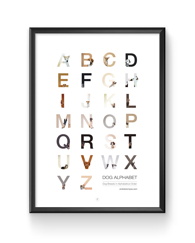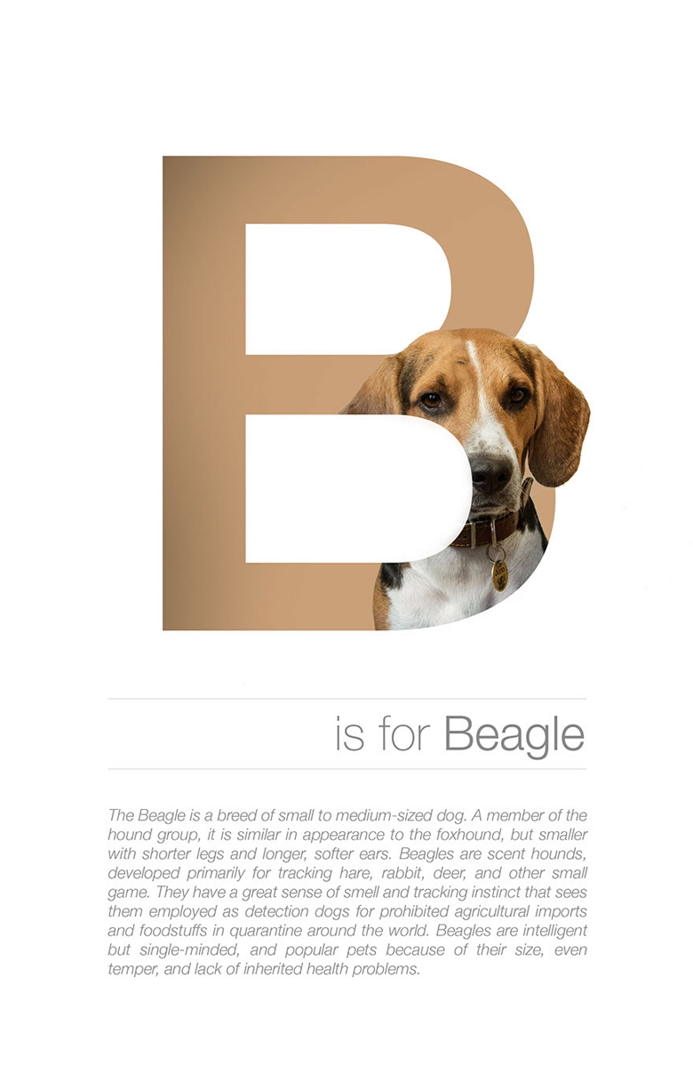 루마니아 디자이너 Andrei Clompos는 비글을 키우기 시작했는데, 강아지 품종으로 A-Z까지 귀여운 알파벳 시리즈를 생각해냈다.귀여운 그의 작품들을 살펴본다.