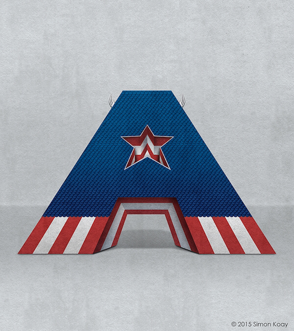 오스트리아 디자이너 simon koay의 Superbet디자인 시리즈. 슈퍼히어로들의 의상과 무기들을 요소로 활용하여 디자인한 슈퍼히어로의 A부터 Z까지 알파벳 디자인