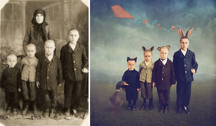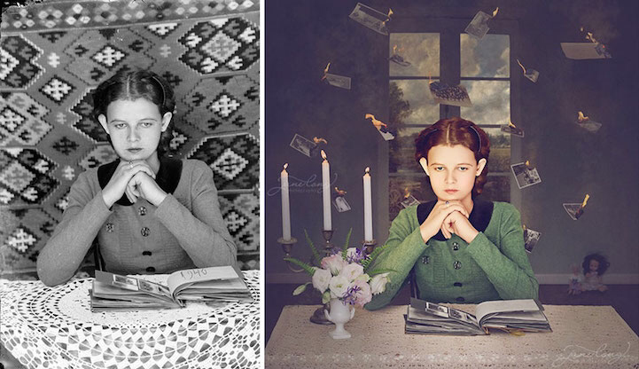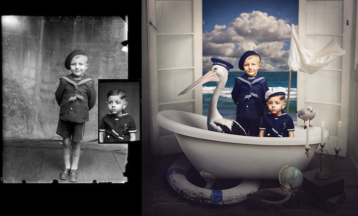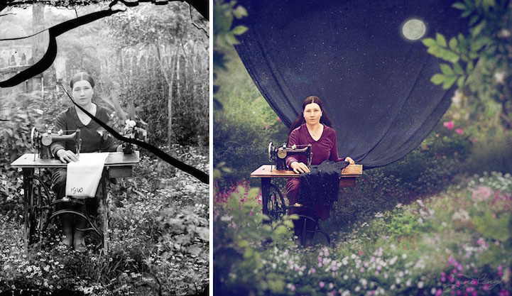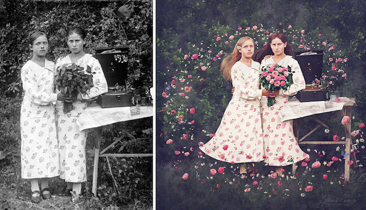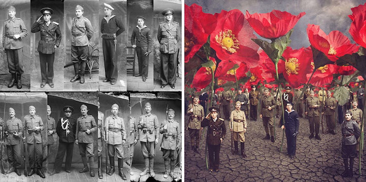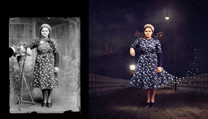 오스트레일리아 출신 작가 Jane Long은 50년이 넘은 흑백사진들을 디지털 방식으로 복원하는 작업을 하고 있습니다. 1984년 1차 세계 대전을 기록한 루마니아 전쟁 사진 작가 Costica Acsinte의 아카이브를 발견한 후 이들을 포토샵을 활용하여 자신만의 상상력을 동원하여 새로운 생명을 불어넣었습니다.