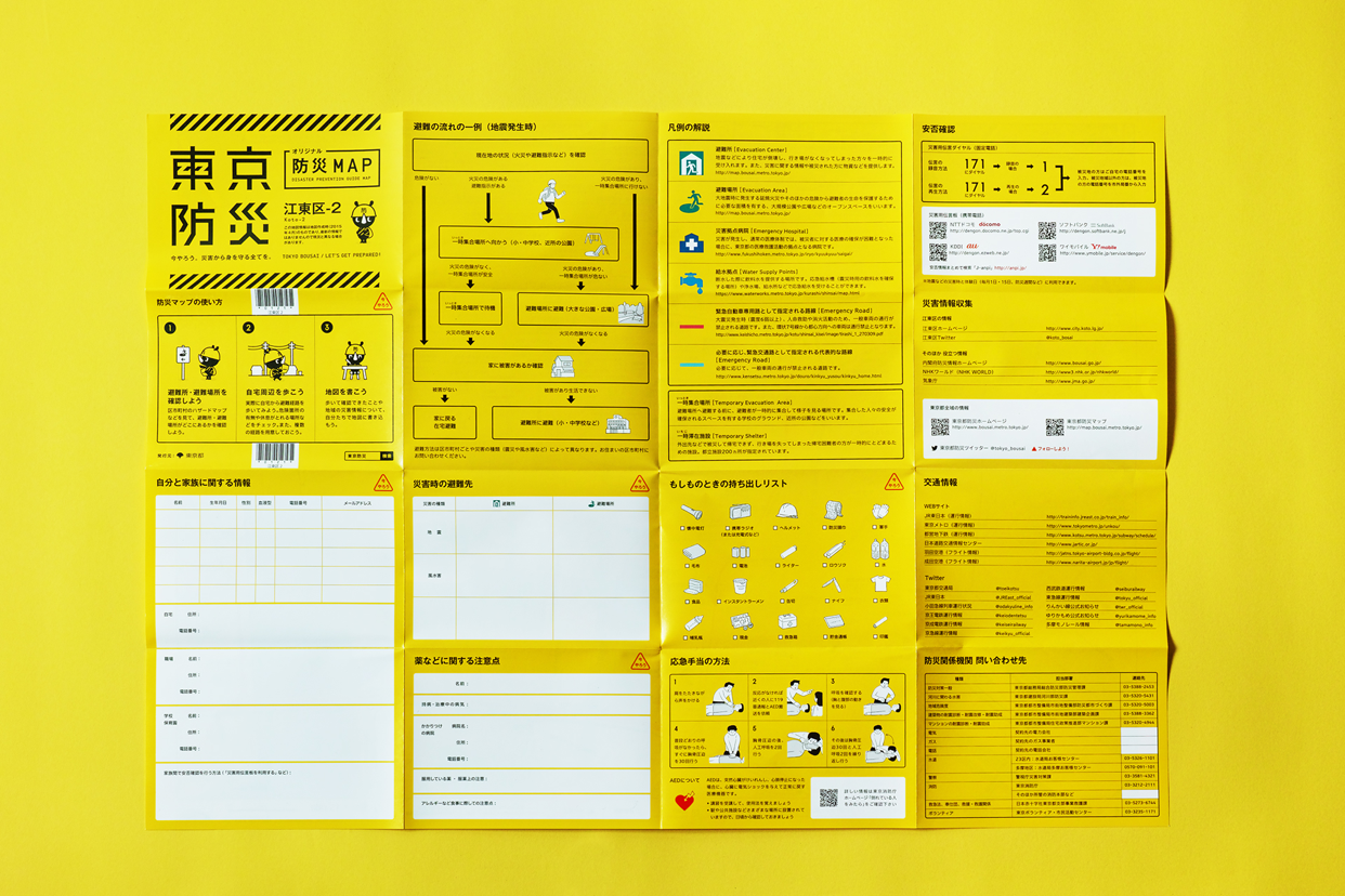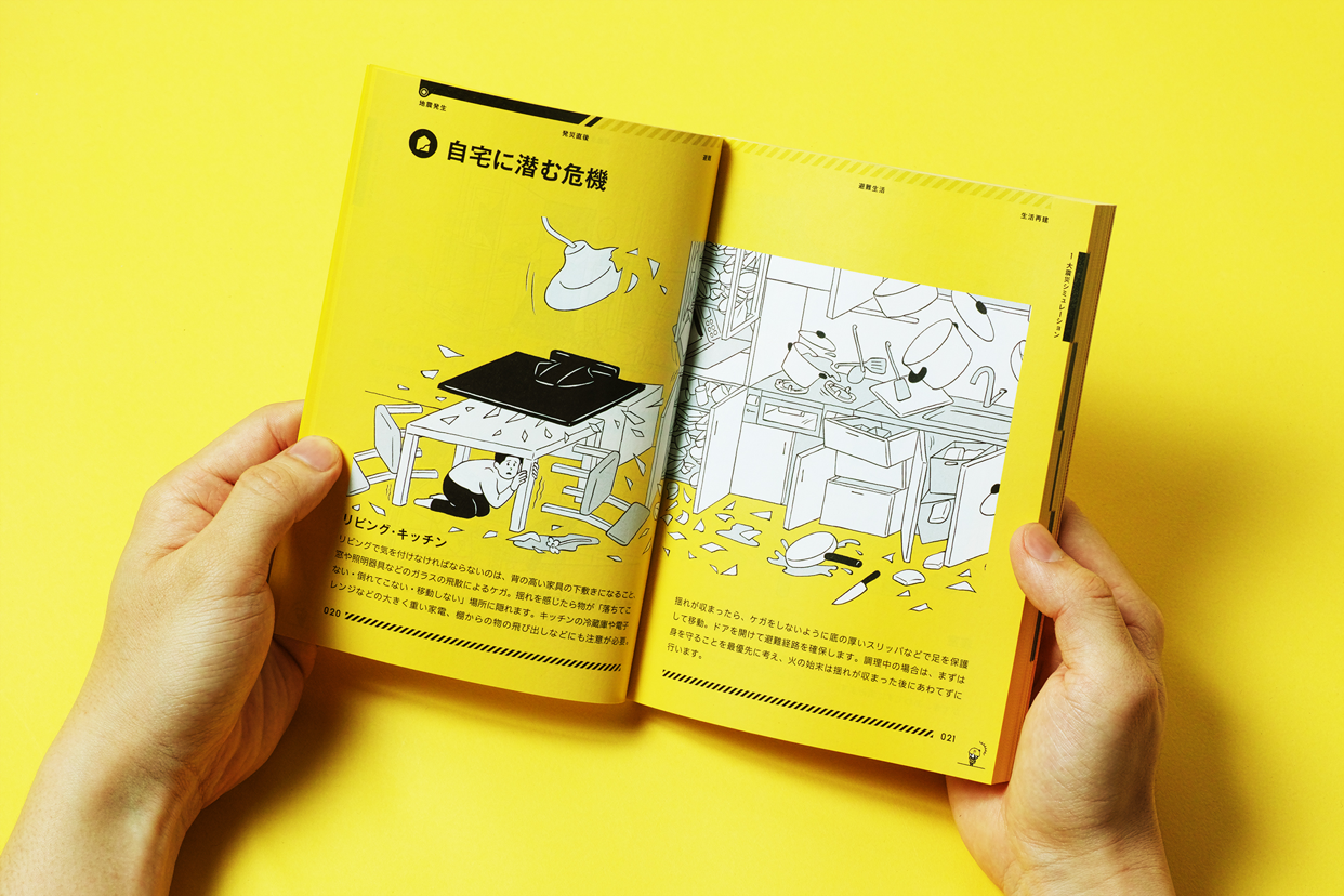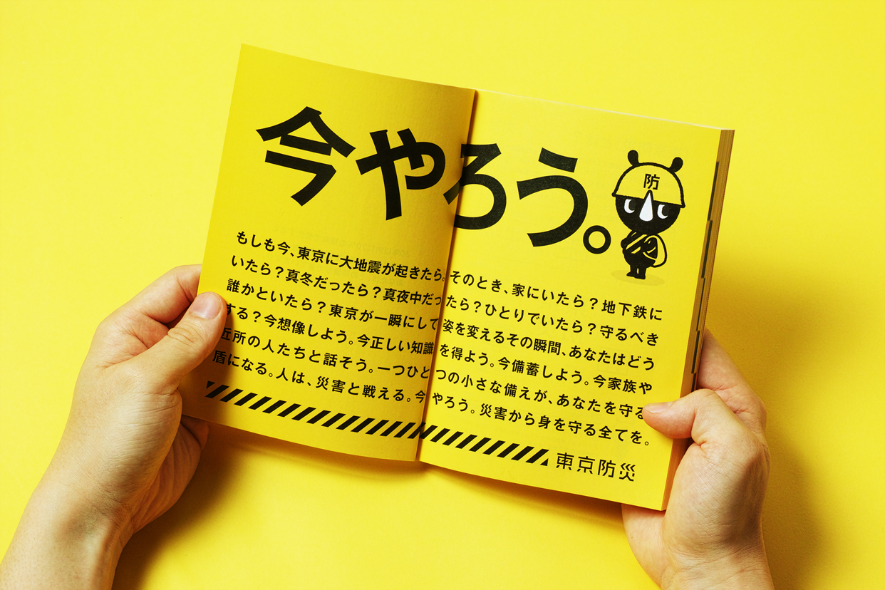 도쿄도청은 재난대비 방재 메뉴얼을 제작했다. Nisigner와 Dentsu의 공동 디자인 협업으로 지진에 대비하기 위하여 750만가구에 배포했다. 노란색과 검은 줄무늬는 비상시에도 쉽게 책을 찾을 수 있도록 한다. 또한 재난 대비법에 대해 만화책 형식으로 설명되고 있어 관심을 끌 수 있도록 하였다. 이 모든것이 넘나 일본스러운 것