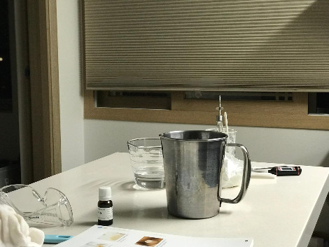 직접 만든 숙성 비누 사용 : 얼굴, 손, 몸에 전부 직접 만든 한 개의 비누를 사용 중이다.
