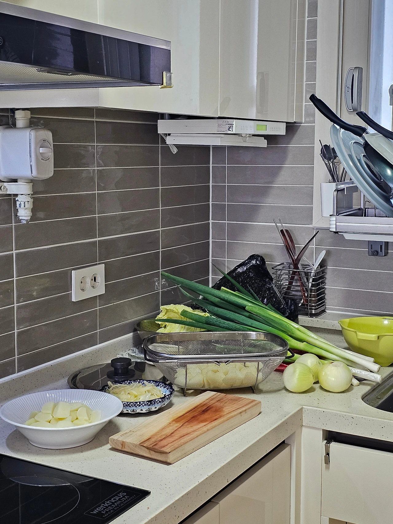 마트에서 사 왔던 감자 한 박스. 먹지 않고 두었더니 싹이 나려고 해서 전부 다 껍질을 벗겨 삶았다. 절반은 냉동실에 얼려 다음에 먹기로 하고, 남은 것은 백종원 선생님 유튜브 보며 감자 수프를 처음으로 만들어봤다. 오늘은 참 오랜 시간 주방에 머물렀다.