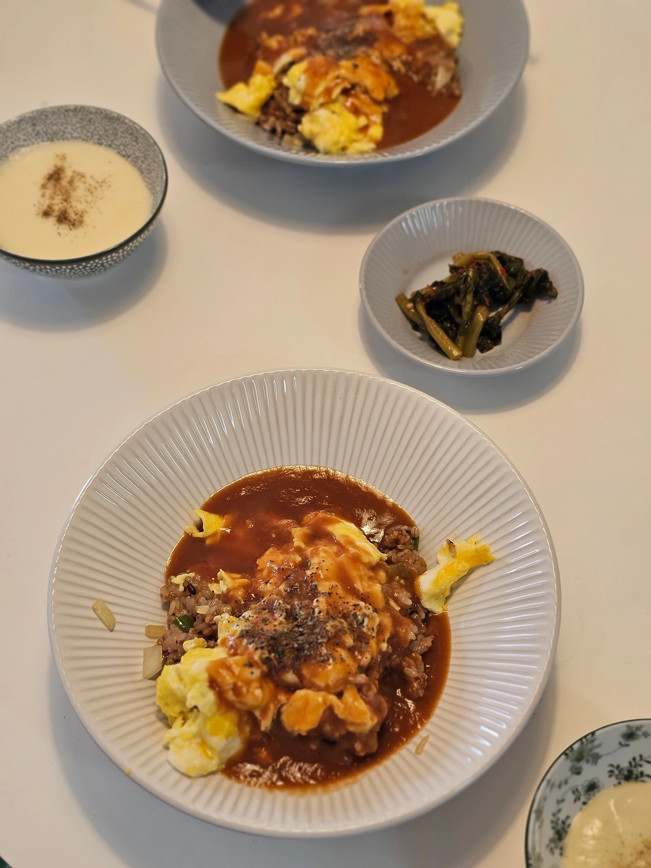 계란만 있으면 집에 있는 재료들로 금방 만들 수 있는 오므라이스. 집밥 백 선생 유튜브만 있으면 뭐든 쉽게 만들 수 있다. 크리미 한 오므라이스를 만들어본 건 처음이었는데 성공적. 너무 맛있어서 두 번 연이어 만들어먹었다.