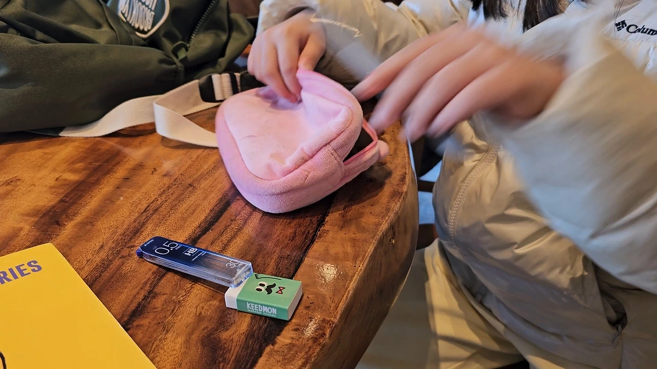 "샤프도 있고요, 지우개도 있고요,..."