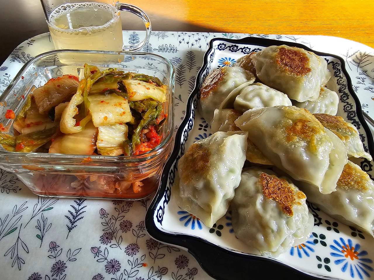 아침은 주먹밥, 점심은 군만두와 김치!