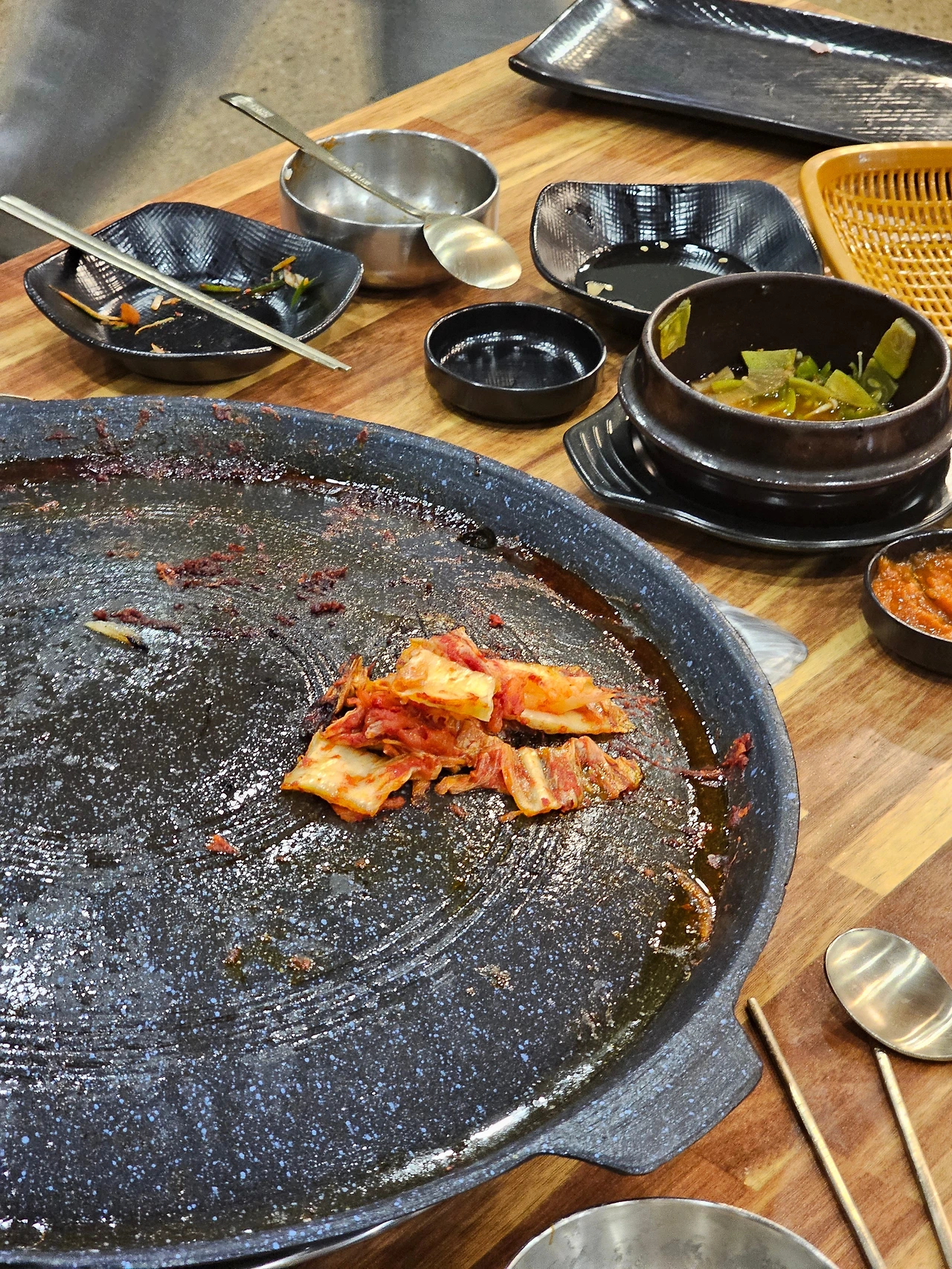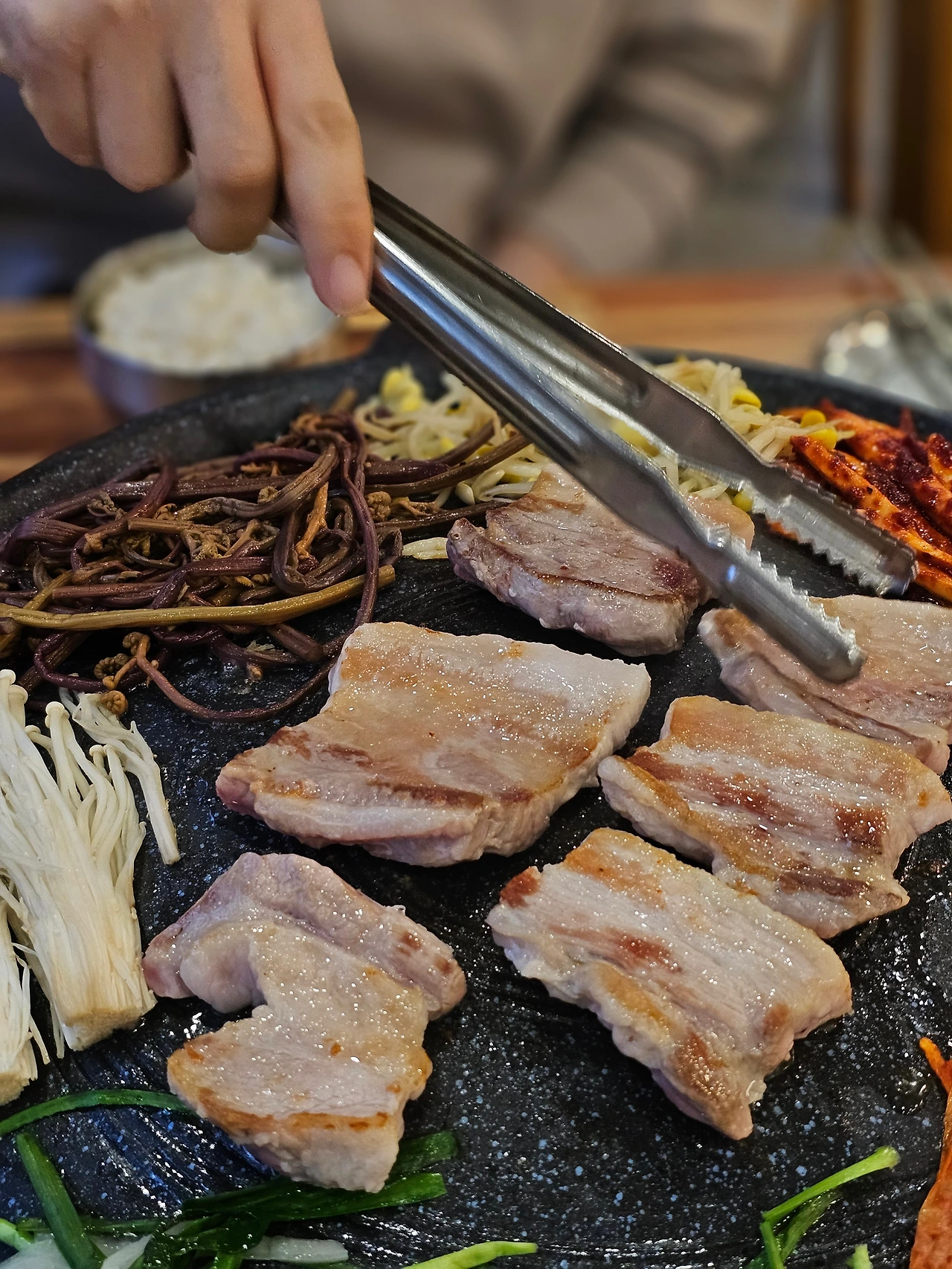 남편과 집 근처의 솥뚜껑 삼겹살 집에 갔다.