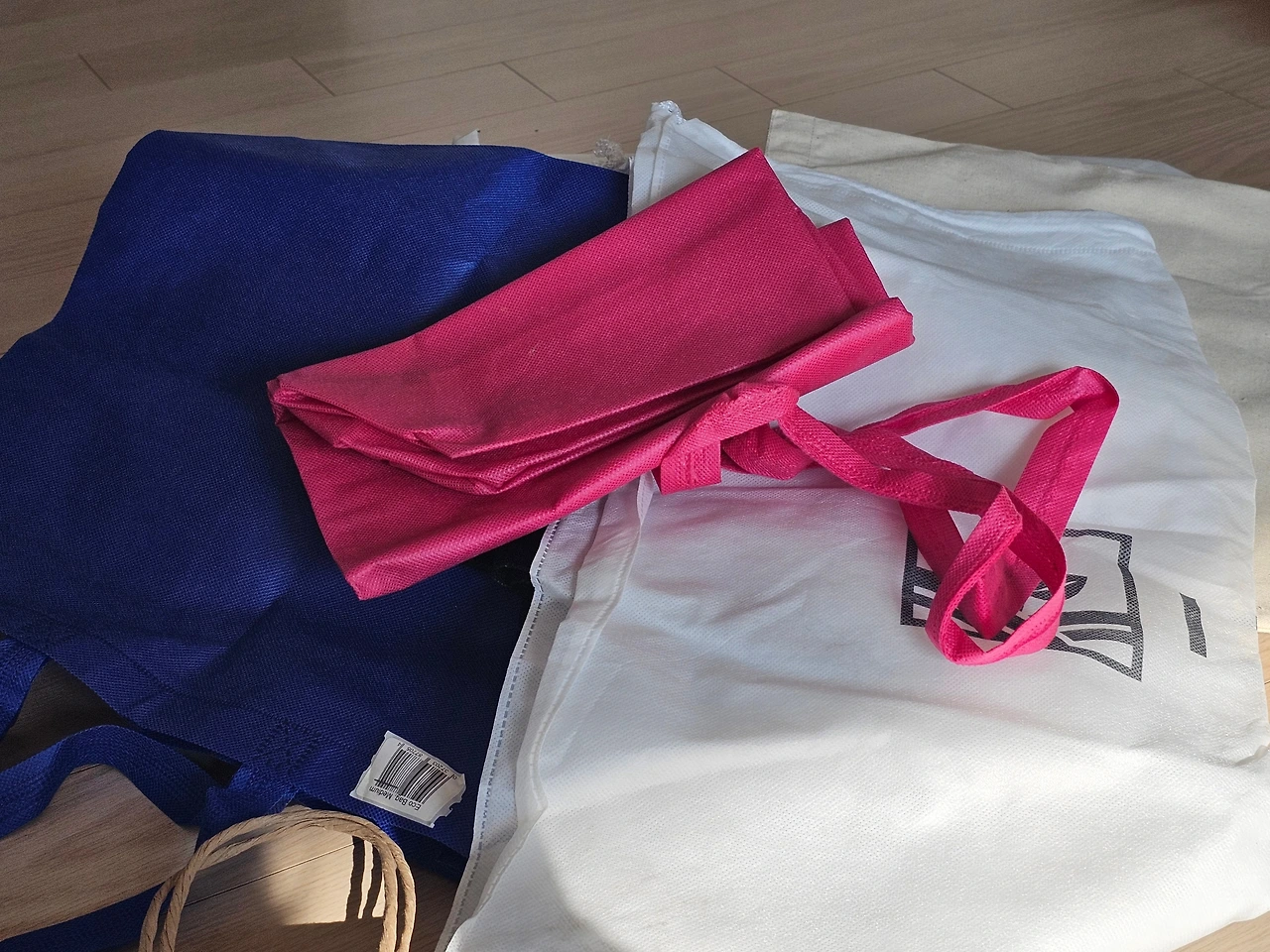 몇 가지만 추려서 큰 부직포 가방에 예쁘게 모아놓기.