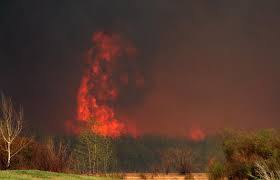 10여 년 전쯤에 일어난 산불의 사진입니다. 불의 높이가 나무의 3배 정도 되는 것을 보실 수 있습니다. 이 지역의 나무의 키가 약 15미터이니, 불의 높이는 45미터 정도라 추정이 가능합니다)