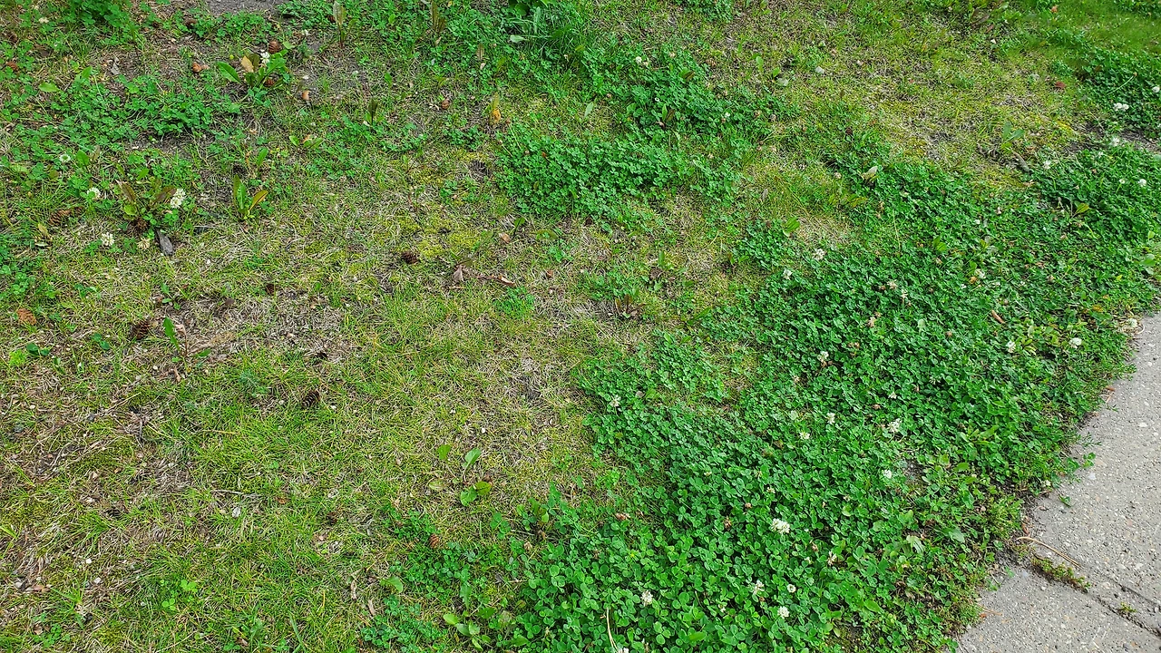 클로버의 경우는 조금 다릅니다. 아마도 학교를 다니시면서 콩과 식물과 질소 고정에 관한 이야기를 한 번쯤을 들어 보셨을 것이라 생각합니다. 클로버가 이 콩과 식물 중 한종입니다. 대기의 78%를 차지하고 있는 질소는 아미노산이나 DNA와 같이 생명체의 생존을 위해 필수 영양소임에도 불구하고, 아이러니하게도 식물의 성장에 가장 부족한 원소입니다. 왜냐하면 대기 중에 기체로 존재하는 질소를 식물이 흡수할 수 없기 때문입니다. 다르게 표현하면 대기 중에 있는 질소가 너무 안정적이라 식물이 흡수할 수 있는 조금은 더 불안정한 형태의 질소로 쉽게 바뀌지 않기 때문에 식물이 질소를 흡수하는데 어려움을 겪습니다. 이러한 질소는 자연상태에서 번개와 같은 물리적인 인자와 콩과 식물들과 같은 질소 고정 식물, 그리고 질소 고정 미생물을 통해서 식물체가 흡수할 수 있는 형태의 질소로 바뀌게 됩니다. 다시 말해서 흡수할 수 없는 상태의 기체 질소를 흡수할 수 있는 형태로 바꾸는데 많은 에너지가 듭니다. 콩과 식물의 경우 이렇게 질소 고정을 하는데 높은 비용을 내기로 결정해서 영양소가 부족한 곳에서 상대적인 이점을 갖도록 진화한 것입니다. 이것도 식물의 생존 전략의 하나라고 할 수 있겠습니다 (어떻게 보면, 생에 공짜는 없다는 말의 좋은 예가 아닐까 합니다^^). 그렇기 때문에 에너지가 부족한 북한과 같은 나라는 에너지가 많이 드는 질소비료를 만드는데 많은 어려움을 겪고 질소 비료의 부족으로 식량생산이 부족해지는 이중고를 겪고 있는 것입니다. 이야기기 조금 옆으로 샜지만, 이렇게 클로버는 대기 중의 질소를 고정해서 토양에 사용 가능한 질소의 양을 늘려주기 때문에 토양을 비옥하게 하는데 큰 도움이 되지만, 거꾸로 말하면 이 토양은 질소가 많이 부족한 토양이라는 의미도 됩니다. 그렇기 때문에 이렇게 클로버가 자라고 있는 곳에서 클로버를 뽑아 주어도 잔디가 자라서 그곳을 메꾸어주지 못하고 다시 클로버가 그곳을 덮어 버리는 경우가 많습니다. 쉽게 설명하자면 클로버가 자라는 곳은 질소가 부족해서 잔디와 클로버와의 경쟁에서 클로버가 이긴 것이고, 주위의 잔디가 자라는 곳은 질소가 충분해서 잔디가 클로버와의 경쟁에서 이긴 것이라고 생각할 수 있습니다. 그래서 클로버의 뽑아주지 않더라도 토양에 충분한 질소비료를 주면 자연스럽게 클로버가 없어지고 그 자리를 잔디가 차지하는 것을 보실 수 있을 겁니다. 물론 물도 충분히 주시는 것을 잊지 마셔야 하지만요.