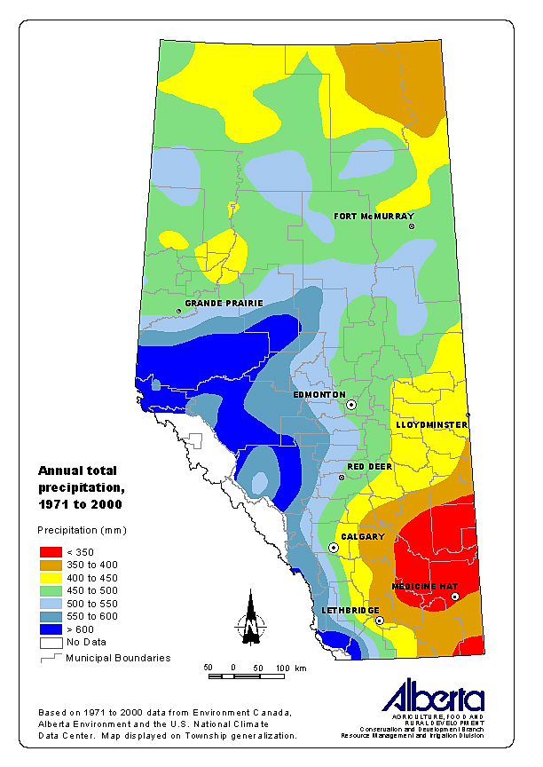 앨버타주의 연간 강수량 (Petre and Rivera, 2015, DOI:10.4095/295754)