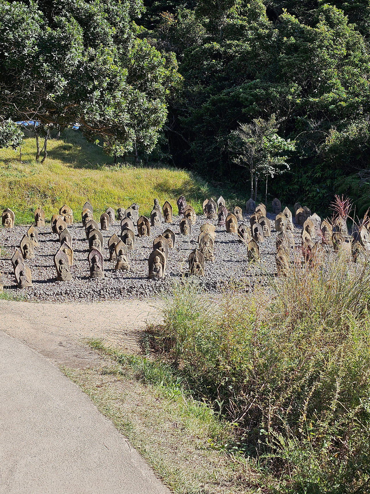 오자와 츠요시의 <슬래그 불상 88/Slag Buddha 88>은 이름 그대로 제철 과정에서 나오는 폐기물인 슬래그로 만든 88개의 불상이다. 왜 하필이면 88개인가 했더니 시코쿠 지역(일본을 이루는 네 개의 섬 중 하나로 다카마쓰가 있다. 나오시마는 지리적으로는 혼슈와 더 가깝지만 행정구역 상 시코쿠 소속이다)의 사찰 88개를 돌아보는 순례인 오헨로를 염두에 둔 모양이다. 나리타 미나코의 만화 <꽃보다도 꽃처럼> 15권에서 한 등장인물이 젊은 나이에 사고로 사망한 친구를 생각하며 오헨로를 떠나는 장면이 꽤 자세히 다뤄진다. (https://series.naver.com/comic/detail.series?productNo=6428238)