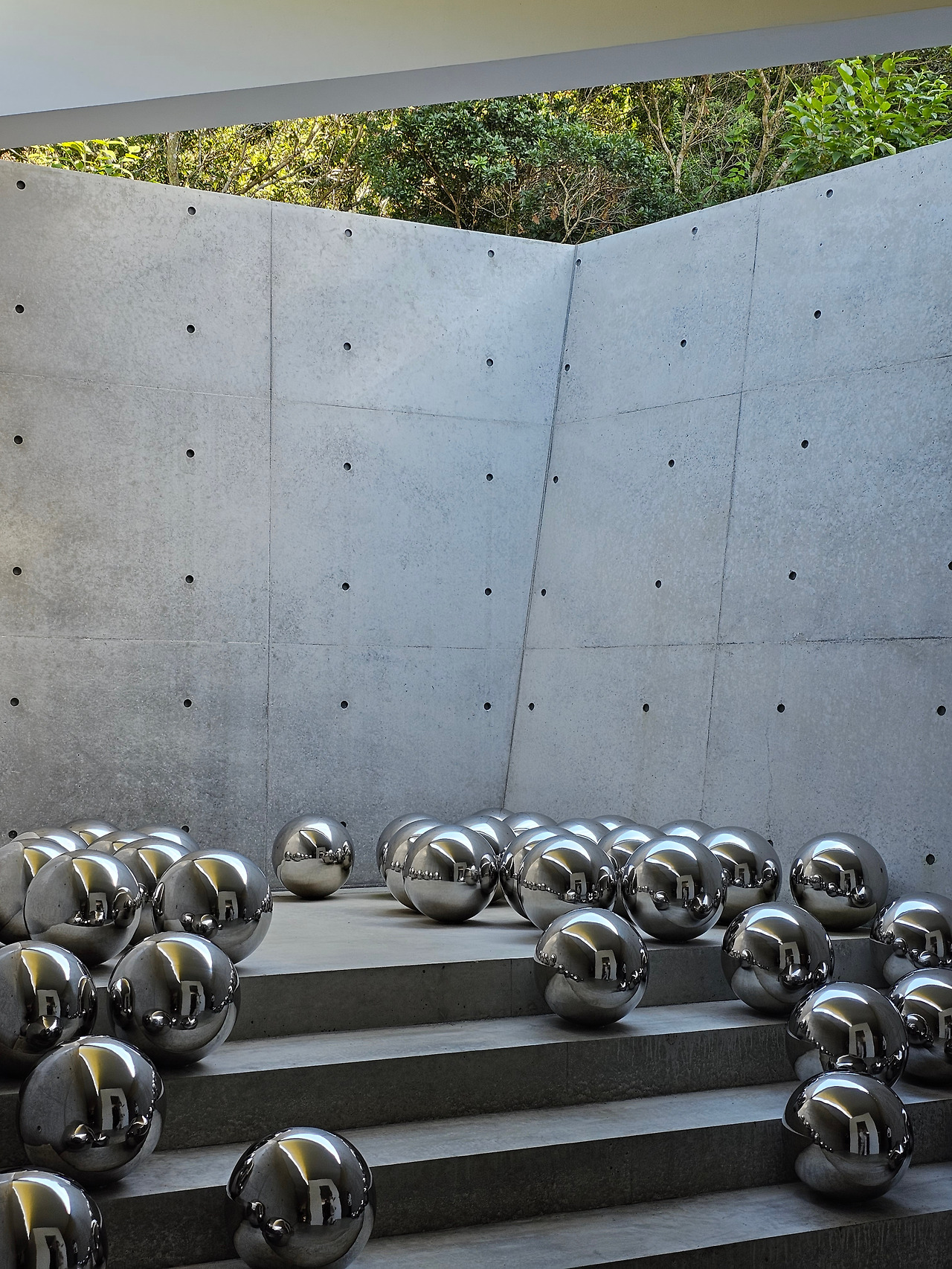 설명 없이도 안도 타다오 솜씨임이 틀림없는 작은 건축물이 보인다. 작은 사원을 의도했다고 하는 이 공간은 부분 부분 트여있어 실내와 실외의 구분이 애매하다. 이곳에도 무심히 놓여있는 은색 공들은 쿠사마 야요이의 <나르키소스 정원 Narcissus Garden>이라는 이름의 작품이다.