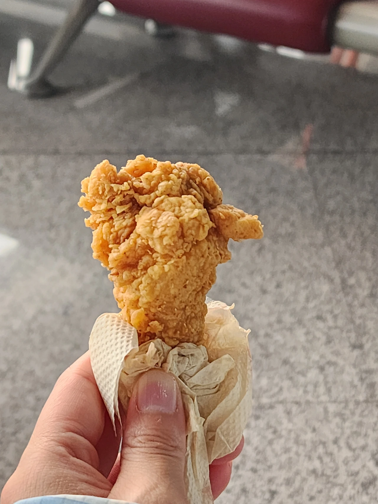 기내식을 먹어 약간 배가 불러 닭다리 하나만 샀다. 사실 맛이 크게 다르진 않지만 나는 이 공간에서 먹는 치킨의 맛을 좋아한다. 여행에 대한 설렘의 맛일까.