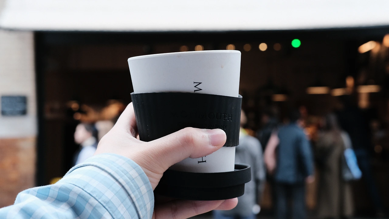 잔 비용 5파운드를 같이 받는다. 그리고 튼튼한 도자기 같은 컵이랑 실리콘으로 된 홀더랑 뚜껑도 준다.