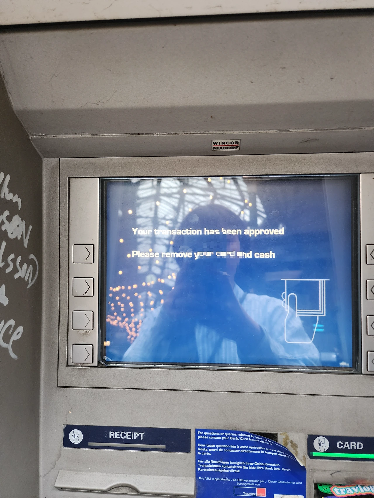 그리고 정말 오직 영어로만 된 기기로 돈을 뽑다니! 처음에는 긴장해서 대충 보고 지나쳐서