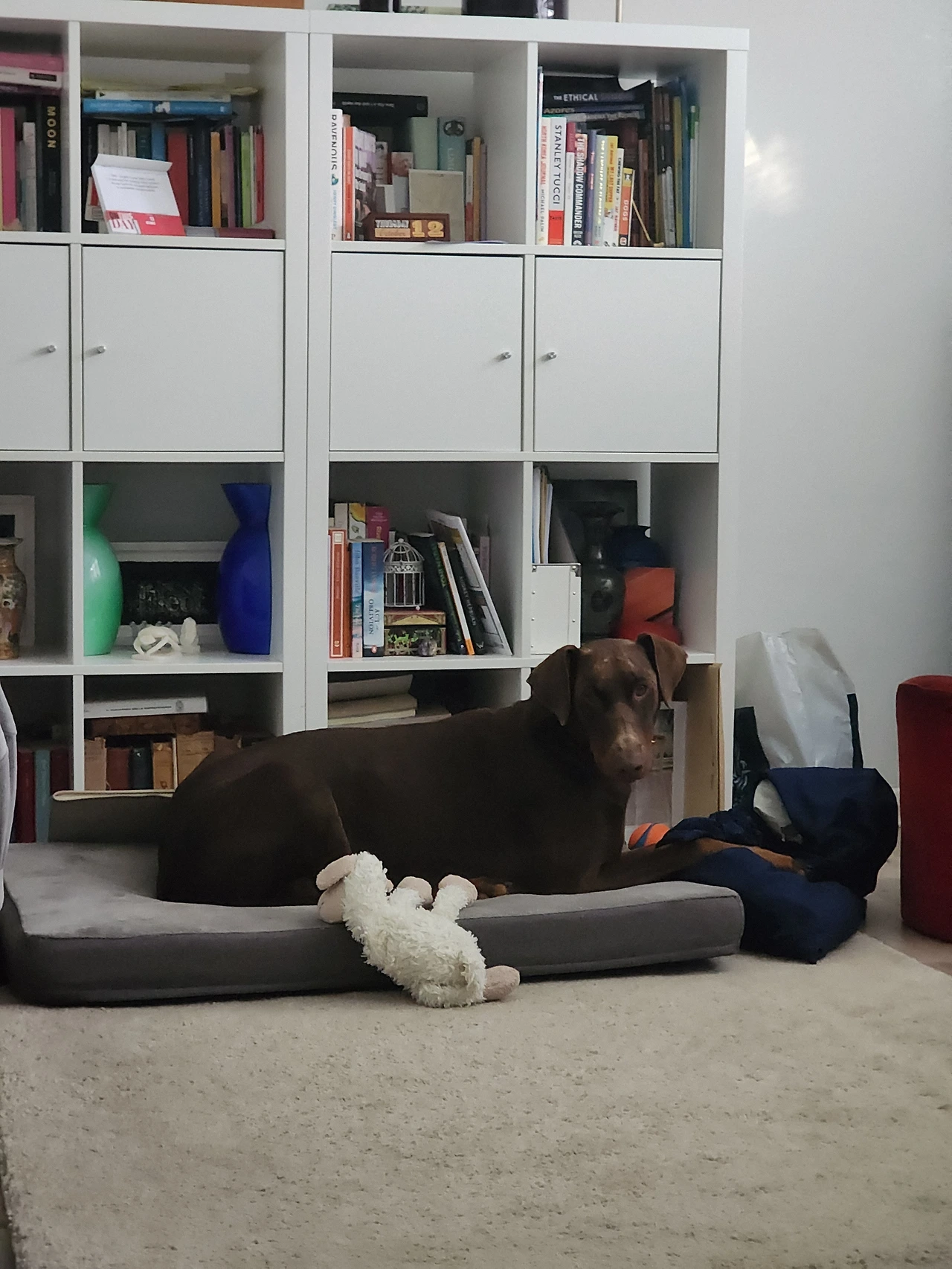 귀여운 보우가 거실에서 쳐다보고 있다. 잘 잤어?
