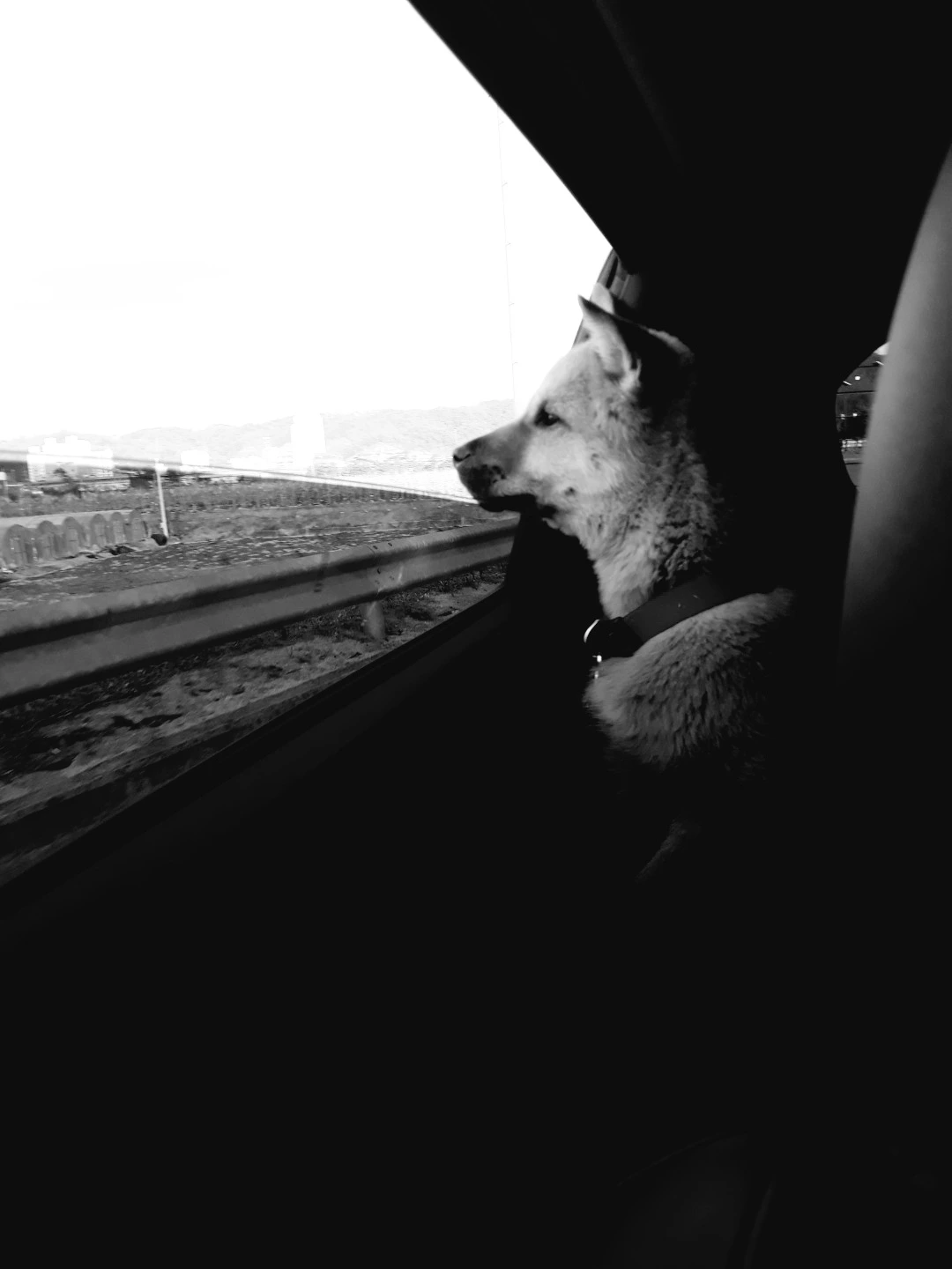나뭇가지를 물어뜯고 포실포실한 논두렁 흙을 파서 코를 들이밀고 냄새 맡거나 푸드덕 가시나무 덤불을 뛰어 날아가는 새떼를 눈으로 좇던 개는 지금 진지하다. 집으로 돌아가는 차 안에서 창 밖의 풍경에 온 신경을 집중하고 있다. 공중부양하며 몸을 턴 갈대숲의 물가를 늑대처럼 질주하던 좀 전의 개는 근엄하기까지 한 표정으로 밖을 내다본다. 늘 개를 옆에 두면서 행동을 관찰하지만 궁금하다. 저런 표정을 지을 때 그의 상념을 지탱하는 생각은 무엇일까. 단순히 모르는 세상의 모습에 대한 깊은 호기심일까. 아니면 또 다른, 인간이 모르는 인식 체계의 안테나를 고요히 휘저으며 자신의 세계에 묻히는 중인가. 선사(禪師)는 구무 불성(狗無佛性)이라 했다. 일체의 업장이 소멸된 존재인 짐승은 불성이 없다고 말했다. 기쁨과 고통을 느끼지만 제한된 사유는 과거와 현재만 기억할 뿐 미래를 가늠하지 못하는 걸까.