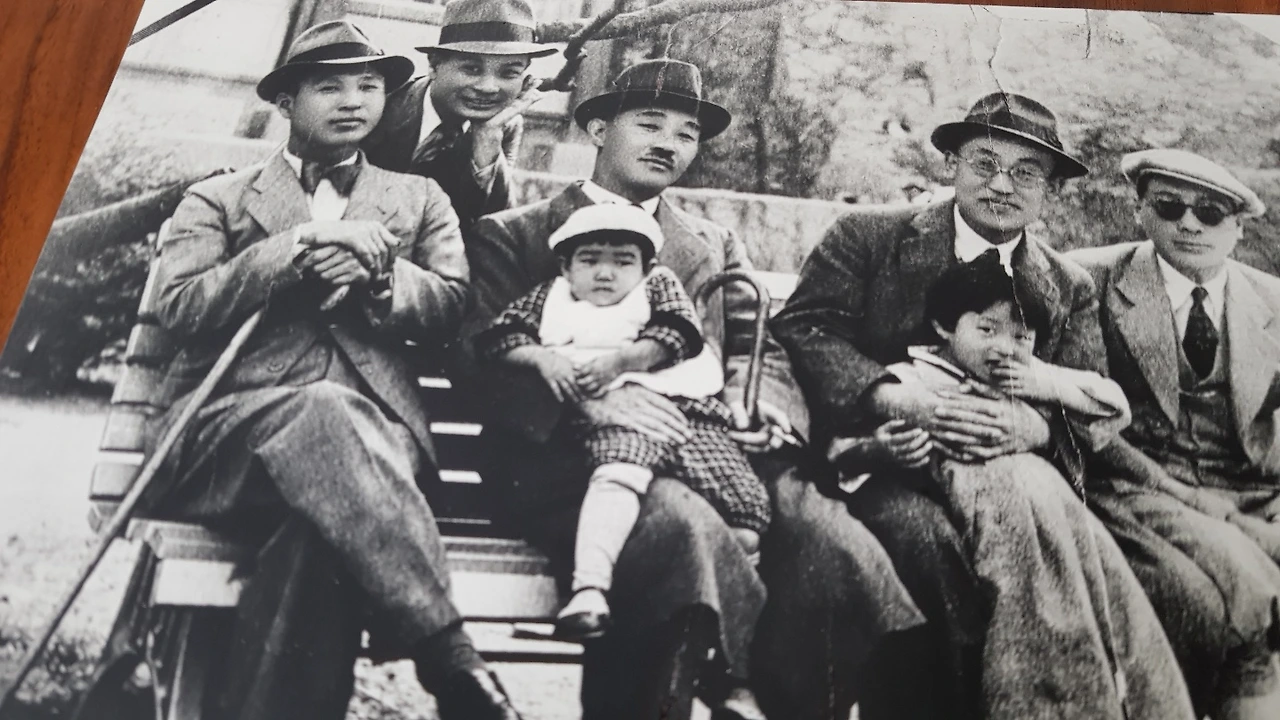 일제 식민지 때 친구들과 찰칵! 맨 왼쪽이 할아버지.후손들은 할아버지 얼굴을 조금씩 얻어갔다.