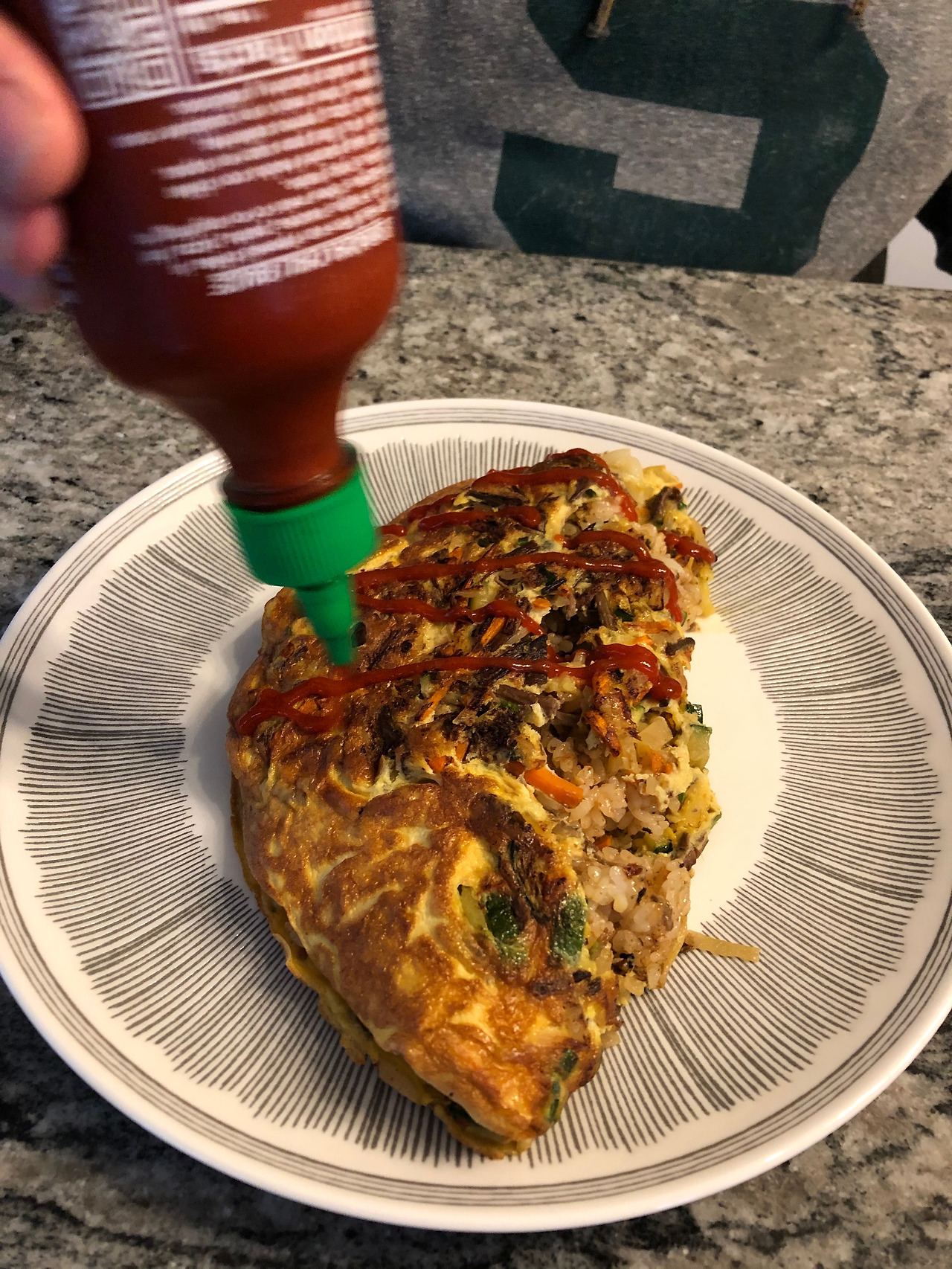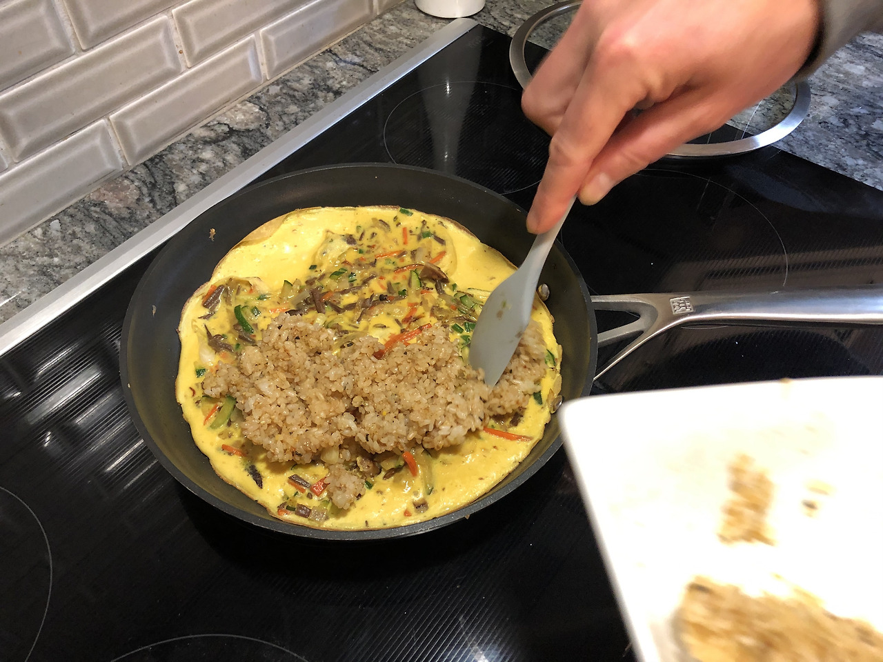 예를 들면, 비빔밥을 만들어 먹고 남은 나물이 있었다. 나는 일 인분 정도 될 듯한 나물을 그대로 넣고 한 그릇의 점심 비빔밥을 만들어 나누어먹으면 되겠다 생각했었다. 그러나 그는, 오믈렛을 만들어볼까 봐,라고 했다. 한국 일본에서 친숙한 "오므라이스"를 알 리 없는 그는, 나물 오믈렛을 만들고 그 안에 간장에 비벼낸 남은 밥을 넣어 반으로 접겠다고 했다. 마땅한 이름도 족보도 없는 오믈렛도 아닌 오므라이스도 아닌 것에다, 시라차 소스 찌이익 뿌려서 나누어먹었다. 비빔밥 맛도 나고, 오므라이스 맛도 나고, 계란밥 맛도 나고, 태국식 오믈렛 맛도 나서 재밌었다.