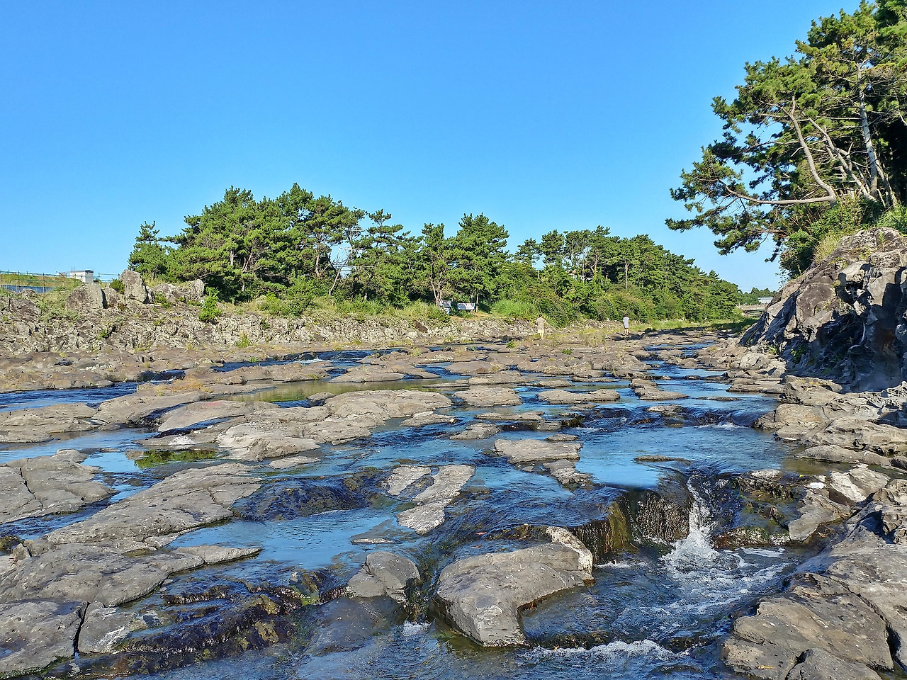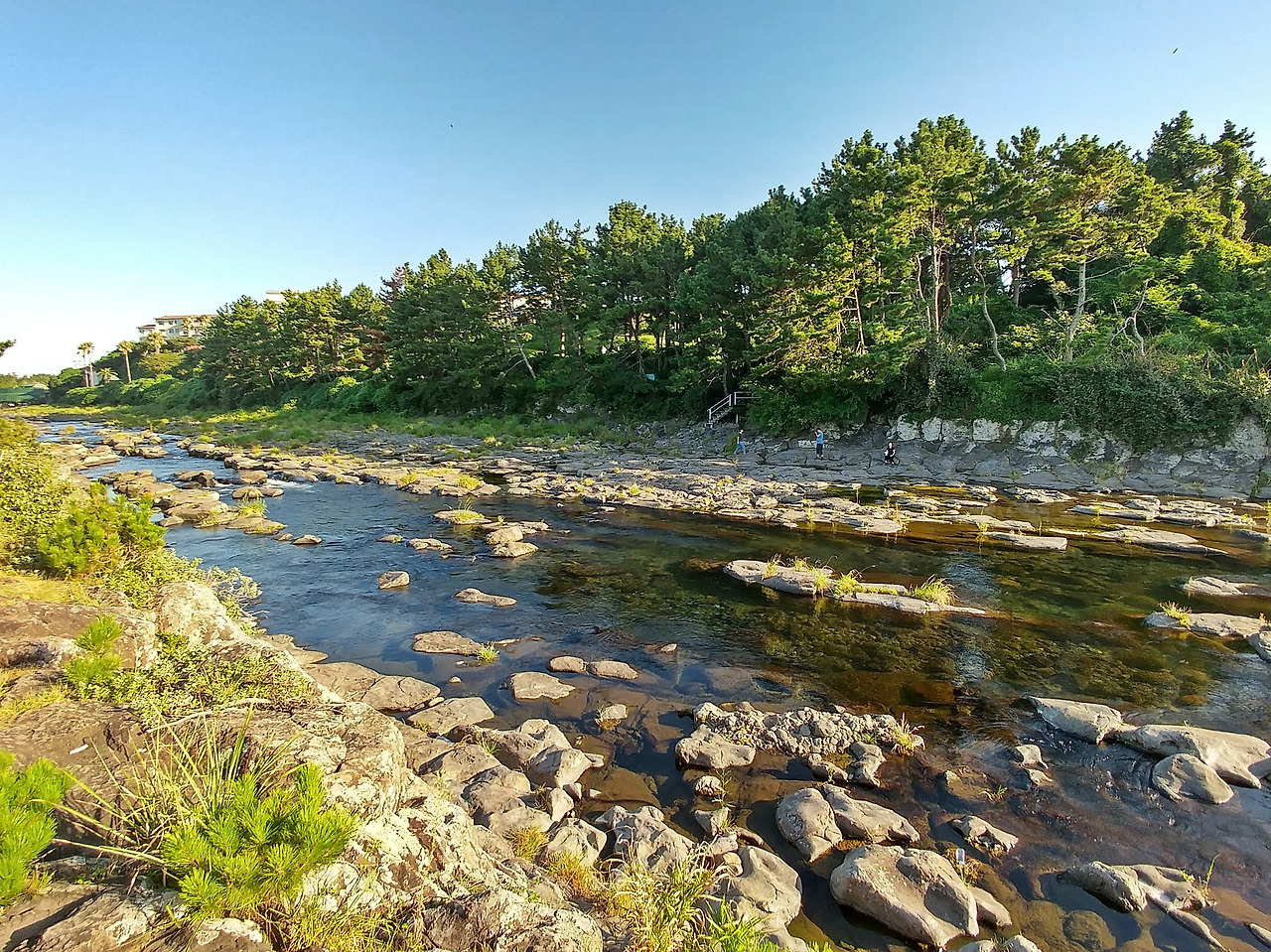 바로 앞 제주 앞바다 그리고 저 넓은 대양(大洋)을 만나기까지 불과 몇 미터, 사계절 힘차게 흐르는 1 급수 맑은 천(川)이다.