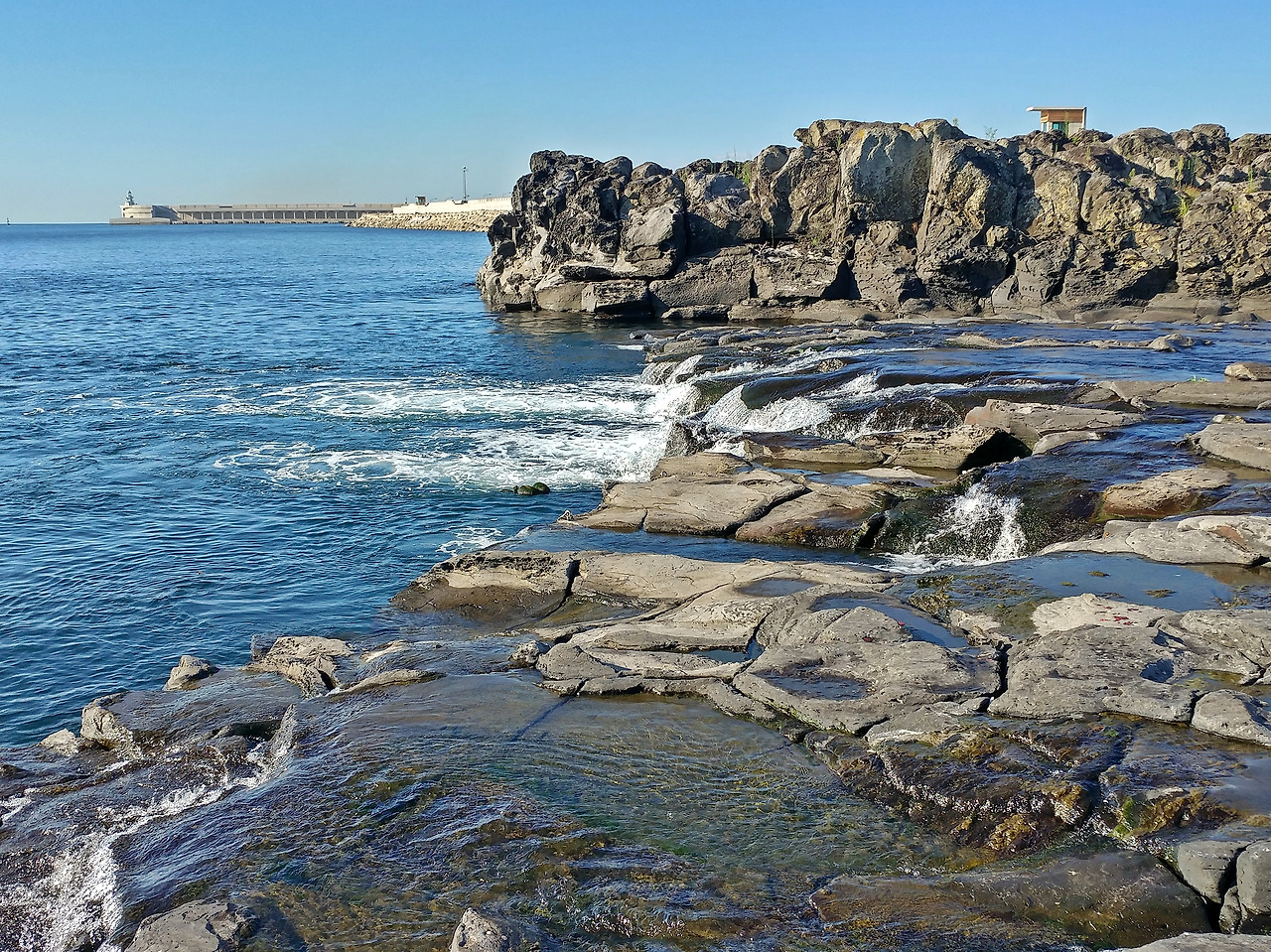 강정천 끝자락에서 만나는 제주의 이 푸른 바다