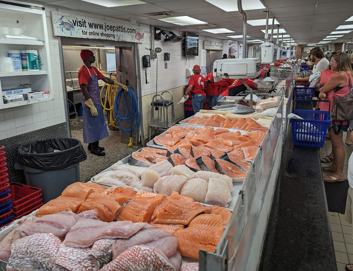 생선들은 대부분 구이용의 필레로 손질이 되어 있다. 새우도 종류가 많고 관자와 굴 랍스터등 갖가지 해산물을 냉동이 아닌 상태로 살 수 있어 인기다. 한쪽에는 작은 초밥집이 있고 다른 쪽에는 해산물 관련 식품과 소스를 판다. Fort Walton과 Panama city에도 이런 류의 씨푸드 마켓이 있어서 가 보았다. 규모가 Joe Patti만 한 것은 아직 보지 못했다.