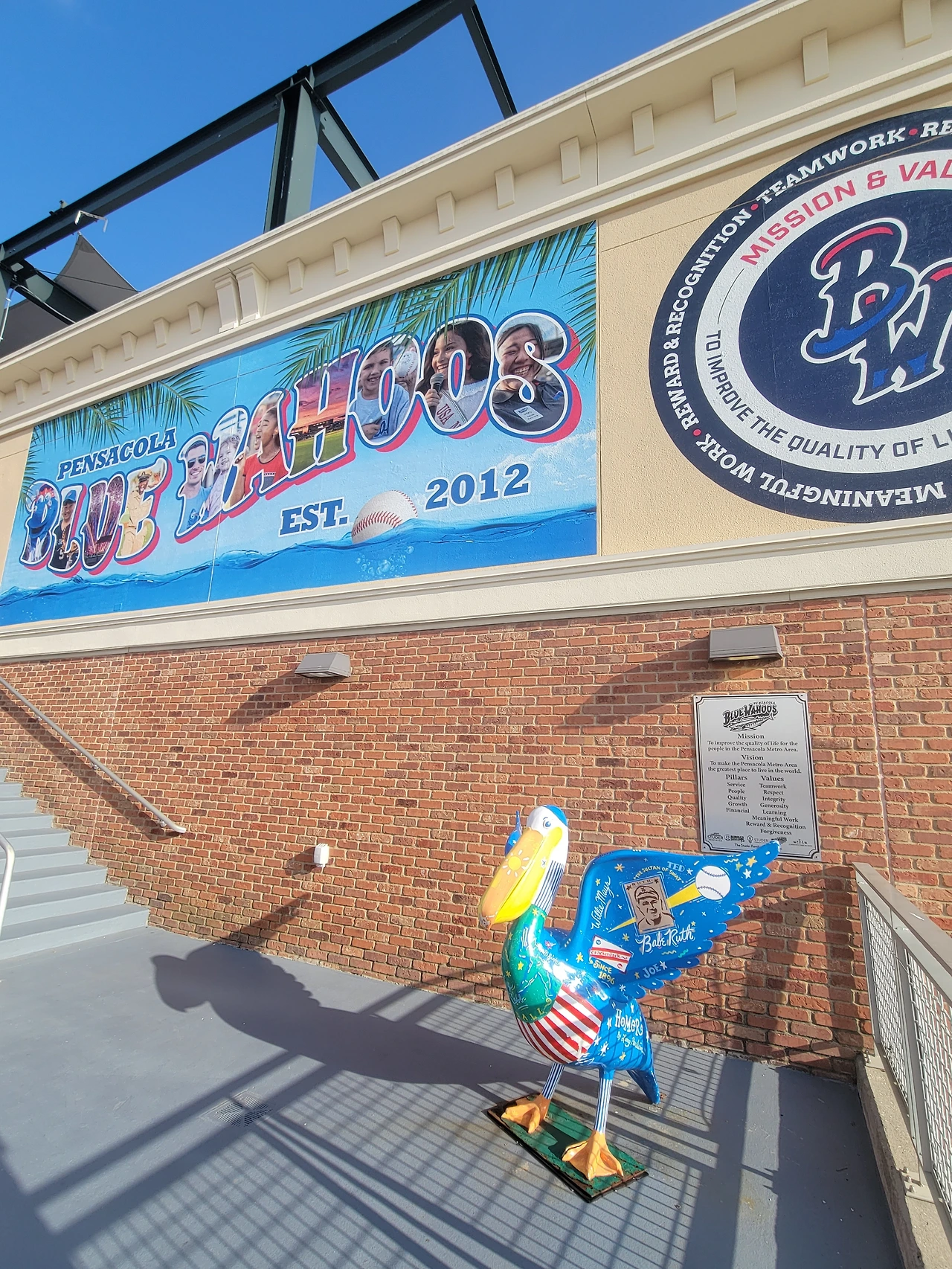 두 번째 어트랙션은 역시 바다다. 팔라팍스 피어(Palafox Pier)에는 그 옛날 스페인령이었을 때의 역사를 알려주는 히스토릭 사인이 있다. 펜사콜라의 마스코트는 팔라팍스라고 하는 펠리콘 비슷한 새다. 이 새의 조형물이 여기저기에 서 있다. 서 있는 장소에 맞게 컬러가 되어 있다. 여기 팔라팍스 피어에 서 있는 팔라팍스 조형물에는 인어와 물고기가 그려져 있다. 이 피어에서는 낚시를 많이 한다. 그리고 낚시꾼 주변으로는 생선과 미끼용 새우를 얻어먹으려는 새들이 종종 보인다. 실제로 펠리컨 같이 생긴 새들도 많이 보인다. 동물원에서만 보던 큰 새들이 눈앞에서 걸어 다니니 신기했다.