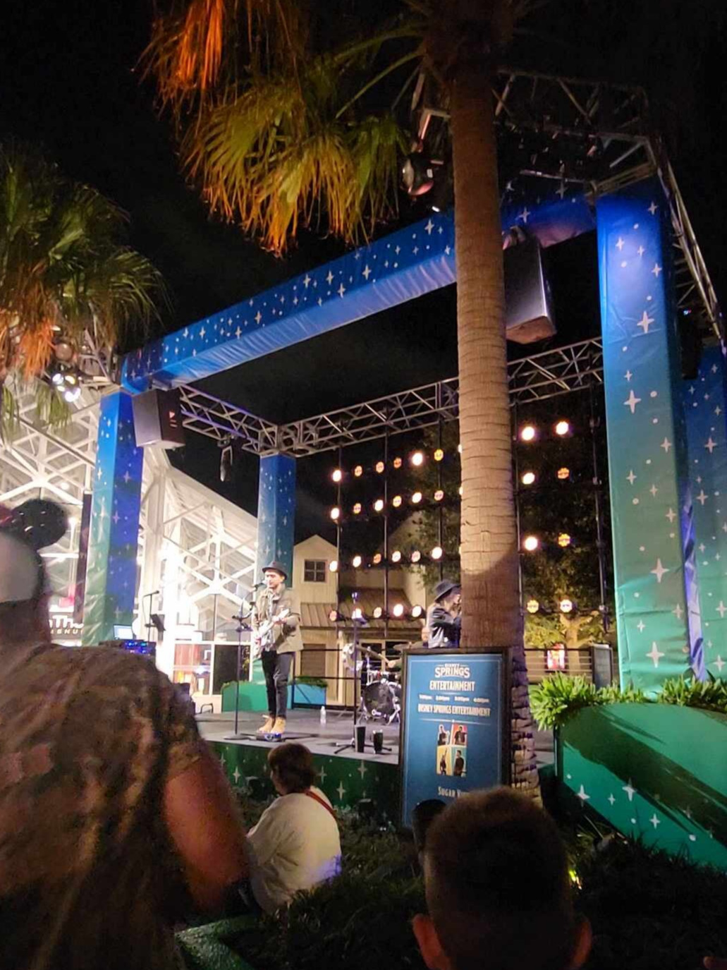 음악소리가 발걸음을 잡는다. 디즈니 스프링스에는 공연장이 두 군데 정도다. 밴드 공연이 대부분이다. 공연장은 두곳이지만 분수근처 광장에서 클래식 악기 공연도 있었고 여자가수 혼자서 하는 공연도 보았다. 걸더다니다 보면 여기저기서 공연을 만날수 있다. 여기서도 밴드가 신나게 공연을 하고 있었다. 앞에 서있던 디즈니 모자를 쓴 미국 아빠가 너무 신나서 아이들과 덩실덩실하고 있었다. 신나게 즐기는 모습에 나도 같이 어깨가 덩실거려졌다. 이렇게 밴드 공연을 볼때면 전자기타를 배우고 싶다는 생각이 든다. 그 쨍하는 소리가 은근 매력있다.