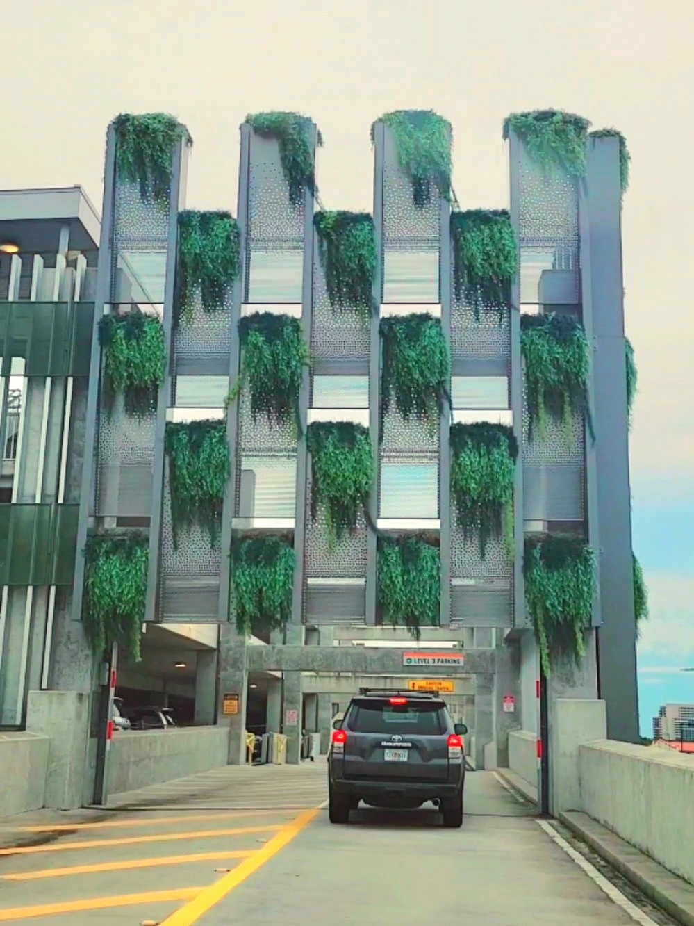 '여기가 주차장이 맞나?' 싶다. 디즈니 스프링스는 주차장부터 신기했다. 주차장 겉모습이 식물로 뒤덮여 있다. 마치 식물공장에 들어가는 느낌이다. 유니버설 시티워크와 달리 디즈니 스프링스는 주차료가 무료다. 그래서 가족외식이나 데이트할 때 디즈니 스프링스로 많이 온다고 한다. 디즈니월드도 아닌데, 디즈니 스프링스로 들어갈 때도 금속탐지기를 통과해야 한다. 입구에 경비도 서 있다. 사람이 많이 모이는 곳은 어디나 안심할 수 없나 보다.