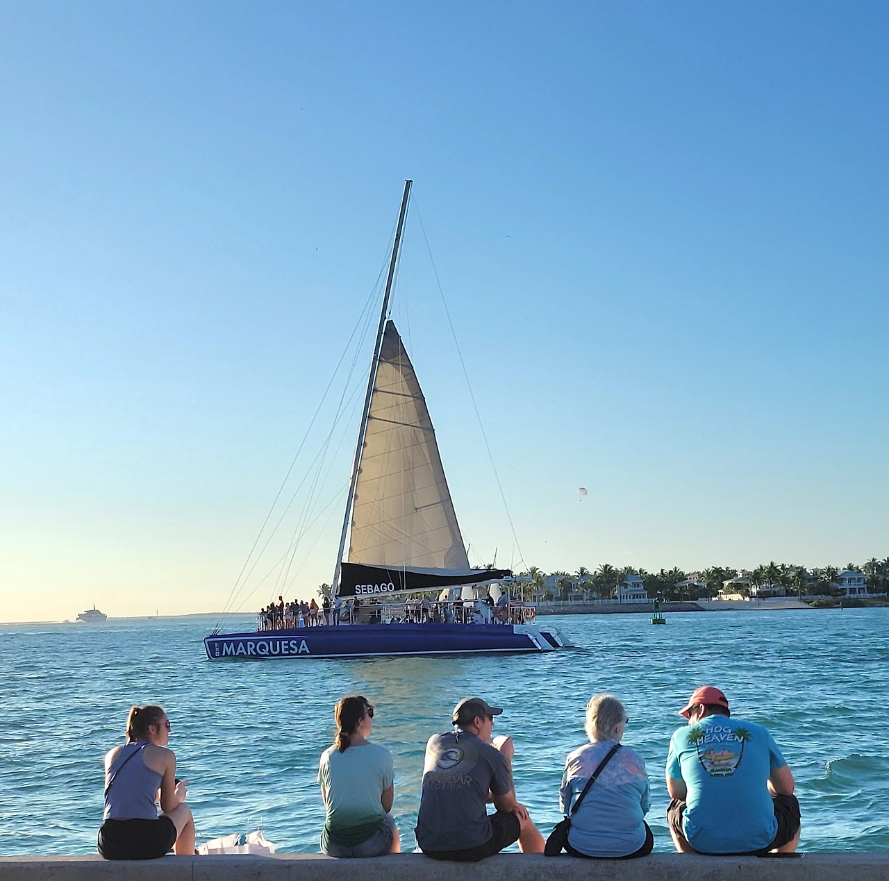말로리 스퀘어에서 선셋을 기다려 본다. 데크는 이미 사람들로 가득 차 있고 요트를 타고 바다에 나가서 선셋을 보려는 사람도 많은지 요트도 많이 떠 있다. 미국 최남단의 해는 더 금빛으로 찬란하게 서서히 가라앉았다. 해가 지고 나니 더 반짝이는 말로리 스퀘어의 모습도 사랑스러웠다.