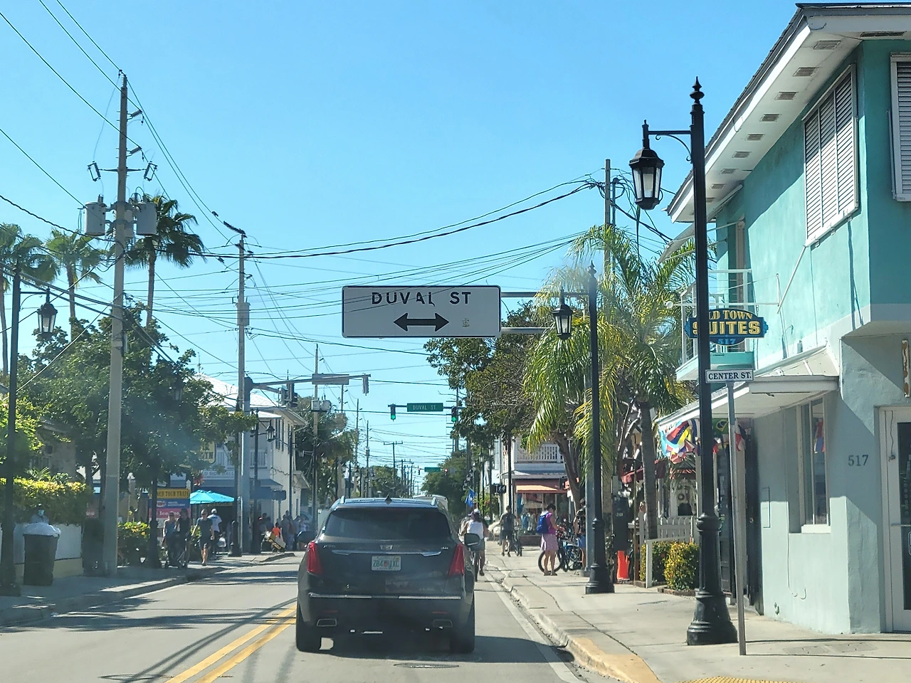 키웨스트에 도착하니 이정표가 맞는다. 드디어 미국 최남단 키웨스트다! 12월 말이지만 미국 최남단답게 키웨스트는 쨍쨍한 여름이다. 키웨스트 관광의 핵심은 Duval Street에서 시작한다. 걷기만 해도 쿠바 분위기가 느껴지는 곳이다. 마이애미에서 쿠반 샌드위치와 쿠반 커피를 마시며 어렴풋이 쿠바 느낌을 맛보았다면, 키웨스트에는 아예 대놓고 쿠바문화센터가 있다. 마이애미 리틀 하바나에서 수탉 동상을 보았다면 여기서는 길에 닭이 돌아다닌다. 뭔가 쿠바스럽게 한 차원 더 업그레이드되었다. 그도 그럴 것이 쿠바에서 90마일(=145킬로미터) 밖에 안 떨어져 있다고 한다. 거의 서울 - 대전 거리다.