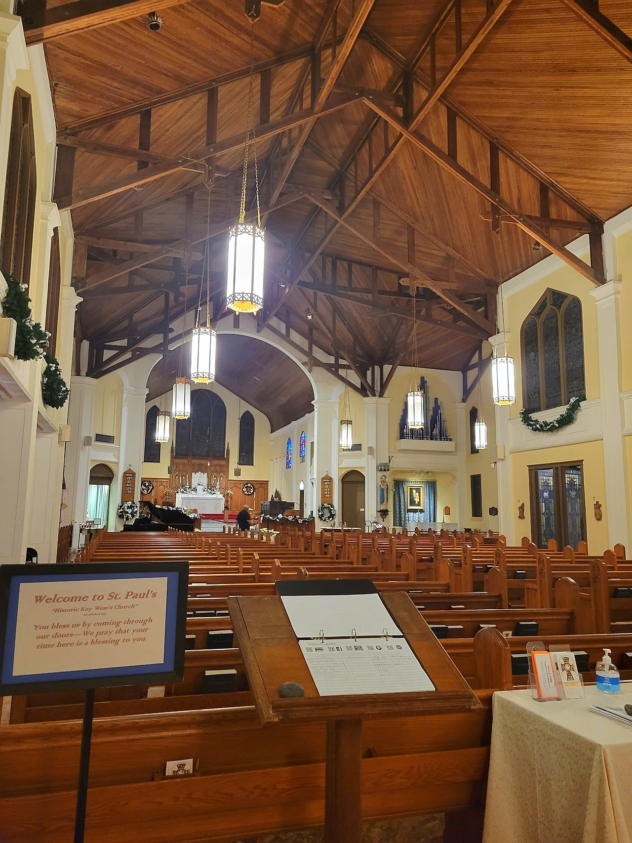 관광객으로 북적이는 듀발 스트리트에서 새하얀 멋진 성당을 만났다. St.Paul Episcopal Church다. 이 성당은 세인트 오거스틴 남쪽으로는 가장 오래된 성당이다. 북적이는 듀발 스트리트에 있다가 여기에 들어오면 조용하고 평화로워진다. 사막의 오아시스처럼 잠시 숨 고르기를 하면서 쉬어 갈 수 있는 곳이다.