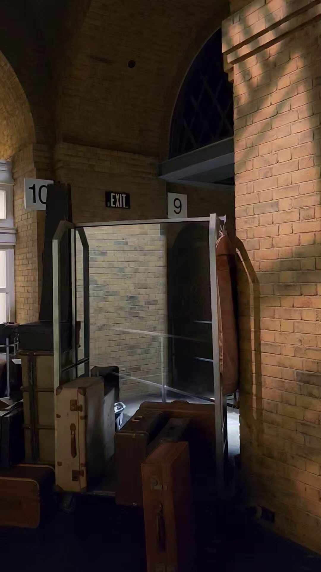 킹스 크로스역은 호그스미드보다 더 기차역처럼 잘 꾸며 놓았다. 아무래도 런던이 배경이라서 중앙역다운 디테일이 있다. 그리고 해리포터가 호그와트 익스프레스를 타러 갈 때 들어가는 9&3/4 플랫폼이 벽에 표시되어 있다. 위의 오른쪽 사진은 9 & 3/4 platform에서 벽속으로 사라지는 마법! 이 일어나는 구간이다. 해리포터 영화에서 보면 9&3/4 플랫폼에서 벽으로 카트를 밀고 들어가면 밖에서 볼 때 쓱 사라지면서 호그와트 익스프레스 플랫폼으로 들어가게 된다.