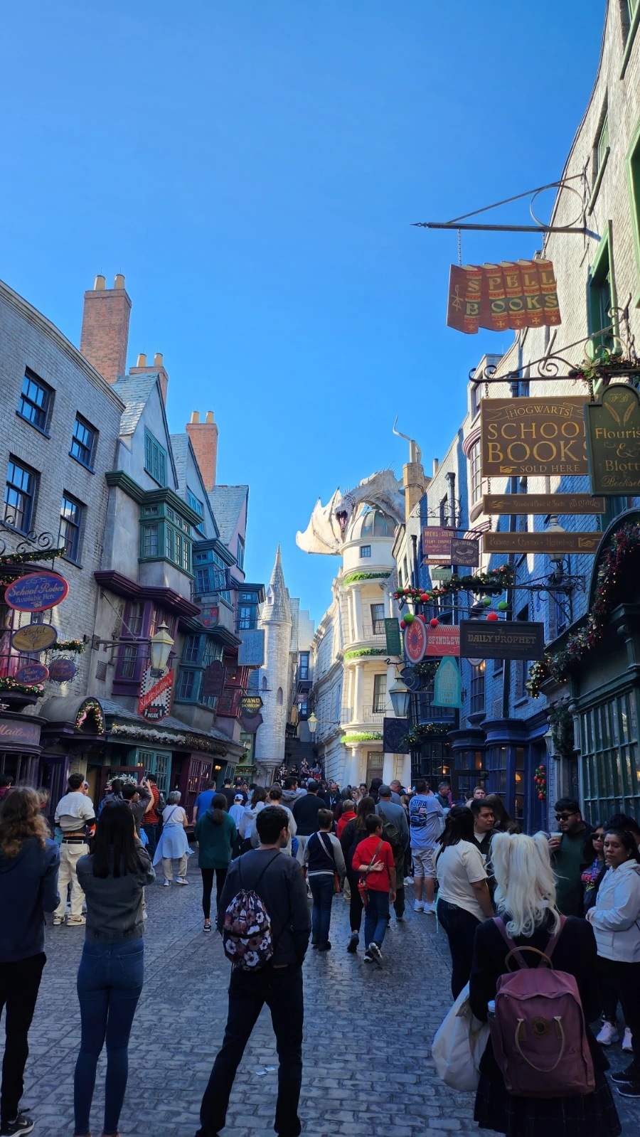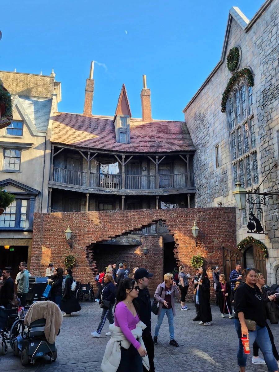 미니온 랜드에서 실컷 즐긴 후 다이애건 앨리로 갔다. 다이애건 앨리는 저렇게 구멍 난 벽 뒤에 있다. 처음에는 입구를 못 찾아서 그 주면을 뱅뱅 돌았었다. 그 옆이 킹스 크로스 스테이션이다. 다이애건 앨리는 라이드는 하나지만 곳곳에 숨어있는 재미가 있다. 그렇지만 호그스미드에 더 사람이 많다. 아무래도 라이드가 더 많아서 그런 것 같다.