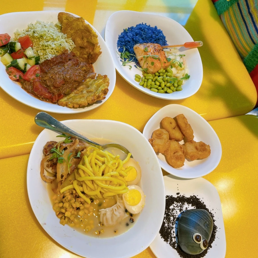 Otto's Noodle Bowl은 일본라면맛이고, Lucy's Top Secret Salmon은 연어구이인데 소스와 함께 먹으니 더 맛있었다. 특히 저 파란 밥이 인상적이었다. El Macho's Salsa y Salsa Ropa Vieja는 멕시코 스타일인데 호불호 없이 다 맛있게 먹을 수 있는 맛이다. 음식 하나하나에 미니온 주인공들의 이름을 붙이고, 색도 이쁘고 맛도 좋아 만족감 100프로! 다음에 와도 여기는 다시 와보고 싶다!