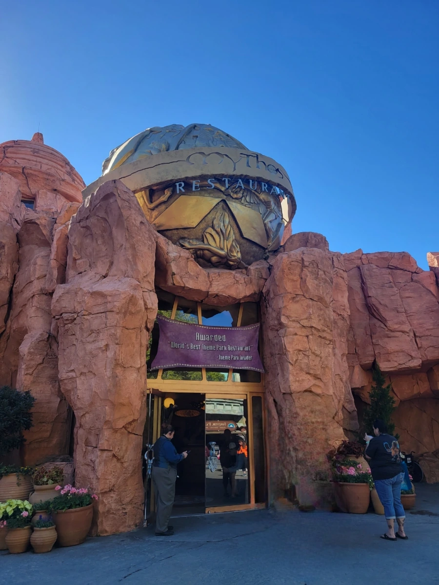 Mythos Restaurant은 Award winning restaurant이다. 유니버설에 있는 많은 레스토랑들을 대상으로 음식과 서비스 만족도등으로 평가를 하는데 그중에서 상을 받은 곳이다. 왠지 상 받은 곳이라고 하면 적어도 돈 내고 실망하지는 않겠구나 하는 믿음이 든다. 이 레스토랑을 예약한 이유 중 하나가 리뷰가 좋았기 때문이기도 하다. 레스토랑 위치도 해리포터월드와 Seuss Landing사이에 있어 나름 아일랜드 오브 어드밴쳐의 중심이라 어디로 이동하던지 편하다.