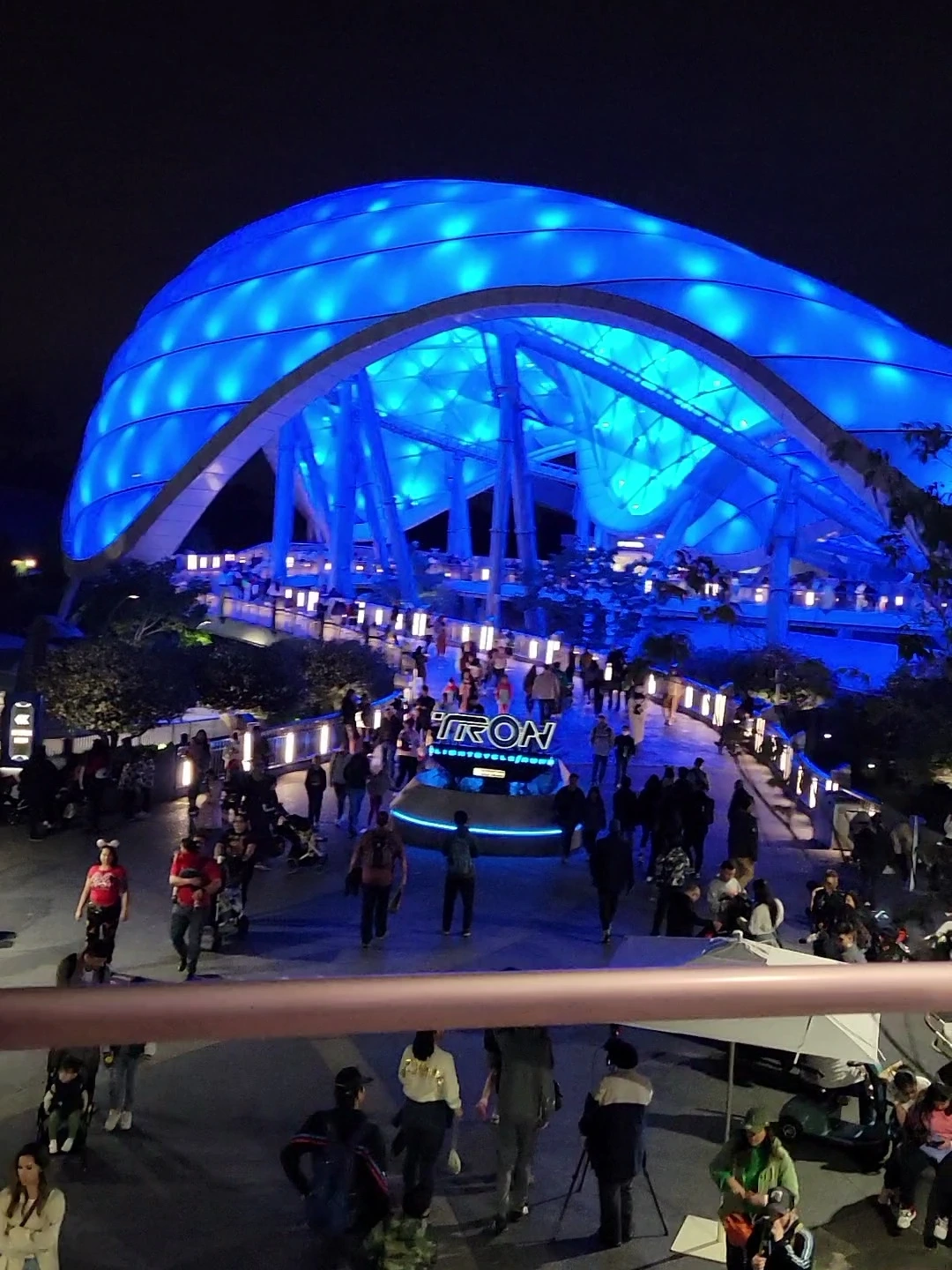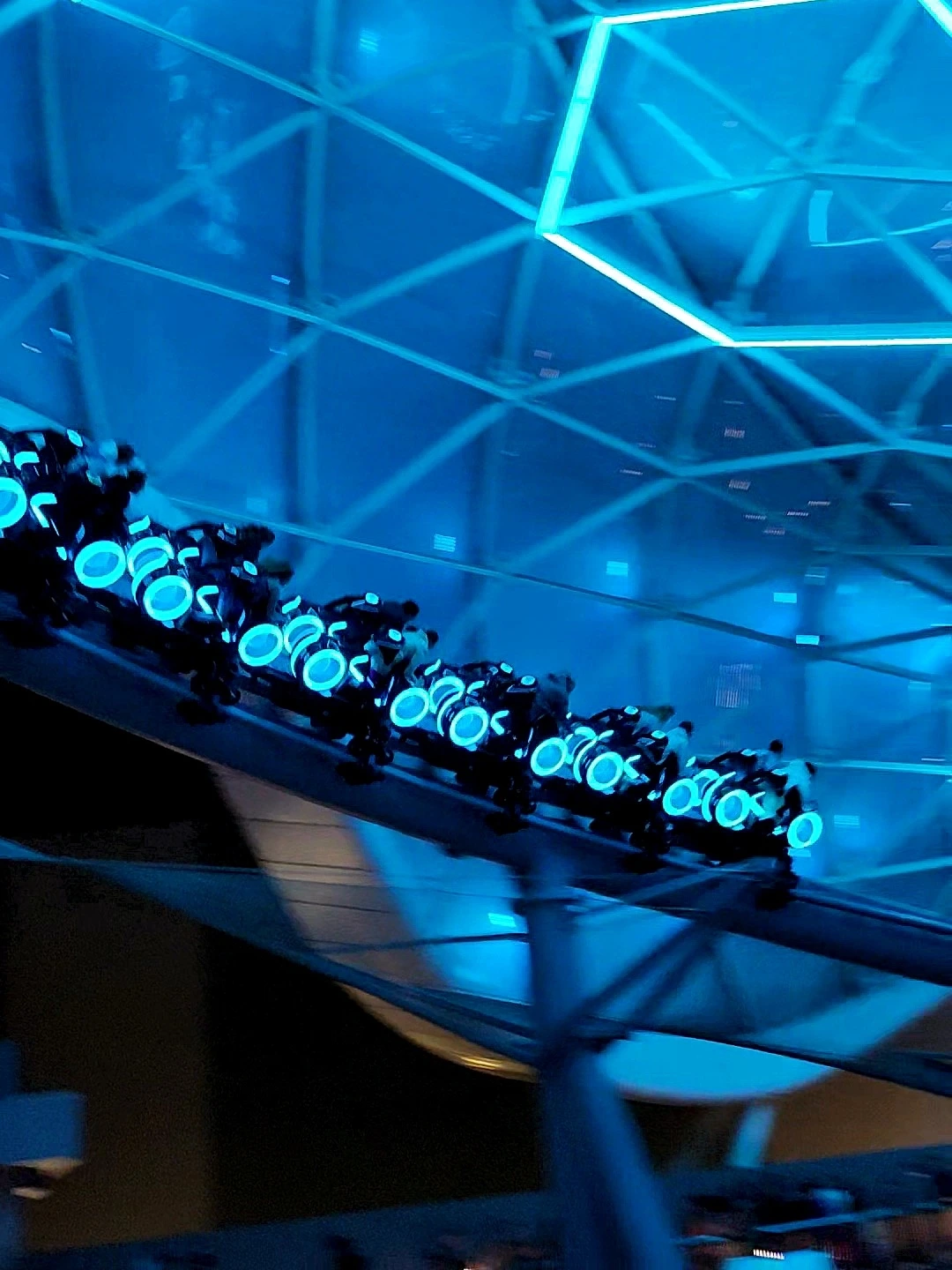 이제 슬슬 저녁이 되면서 오늘의 하이라이트 2개가 남았다. 하나는 밤 9시에 하는(동절기와 하절기에 따라 시간이 조금씩 변경된다) 신데렐라성 레이져 쇼와 불꽃 놀이이고 다른 하나는 돈있어도 못 타는 매직킹덤의 신상 놀이기구인 '트론'이다. 트론은 영화 트론에서 나오는 바이크 경기를 재현한 라이드다. '트론'이라는 영화를 몰랐었는데 이 라이드를 타고 나서 집에 와서 봤다. 영화는 글쎄... 크게 흥행하기에는 좀 지루했다. 그러나! 이 트론은 영화를 모르는 사람이 타기에도 손색이 없었다.정말 미래 사회에 들어와 있는 느낌이다.