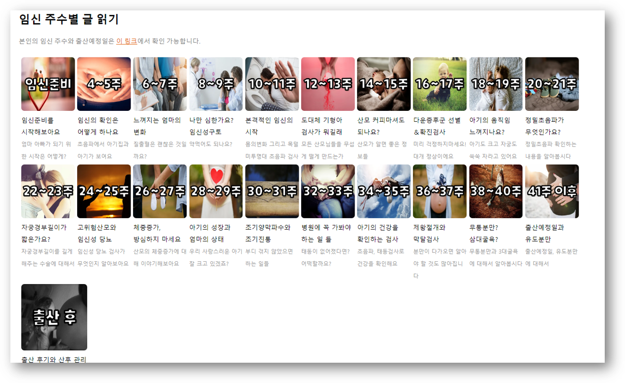 임신 주수별 글 읽기 메뉴를 제공하는데... 이거 만드느라 개고생했다